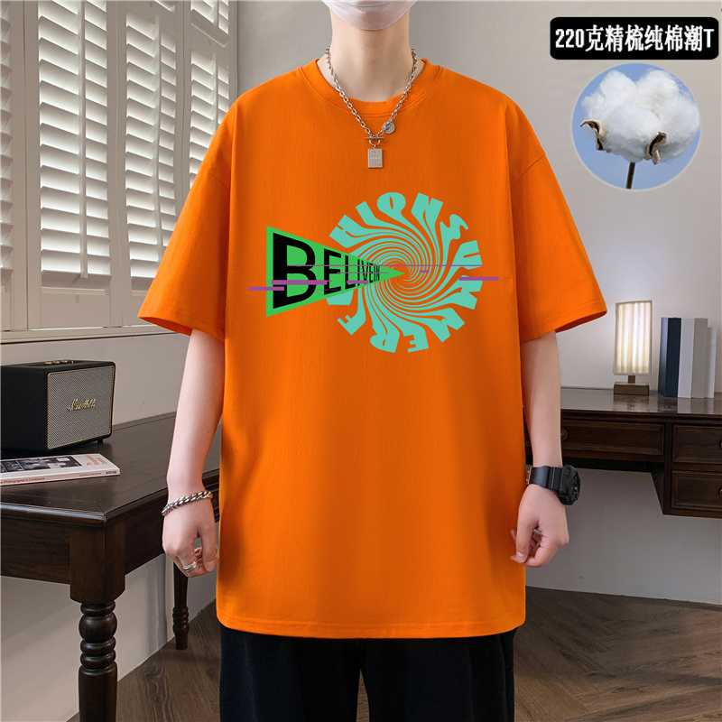 60028夏季高品质220克重磅精梳棉宽松落肩款纯棉T恤【爆款金鱼】-平铺图