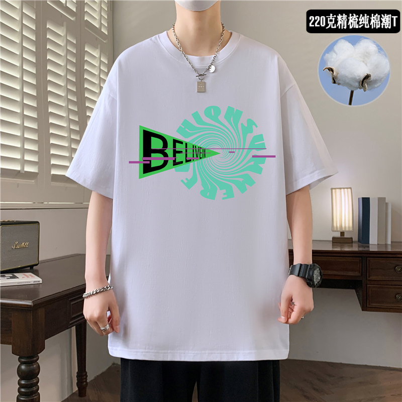 60049夏季高品质220克重磅精梳棉宽松落肩款纯棉T恤【爆款H】-平铺图