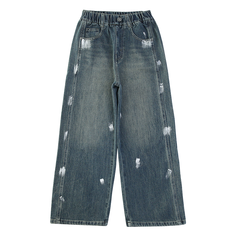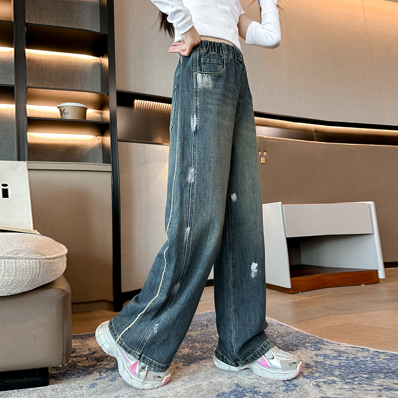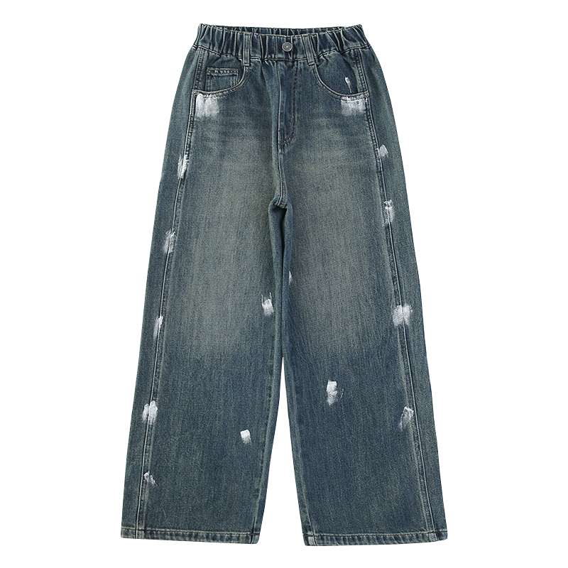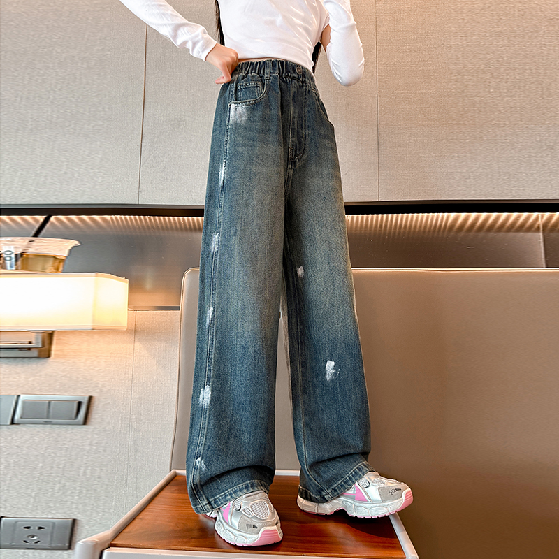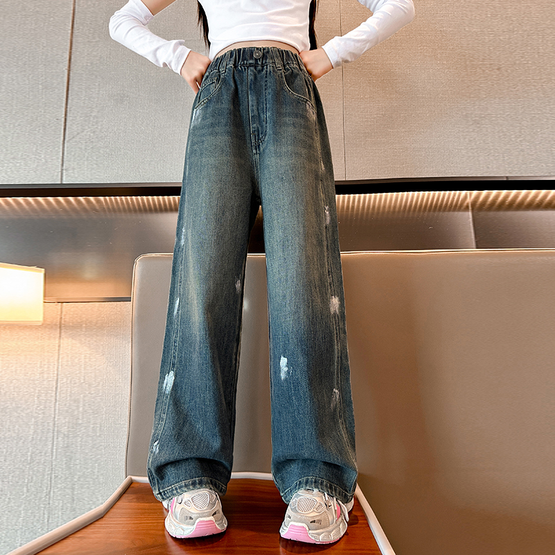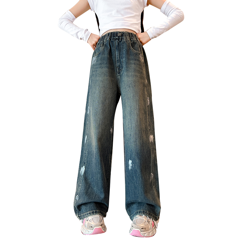 唯爱琪-2扣牛仔阔腿裤女中大童装休闲直筒百搭新款
