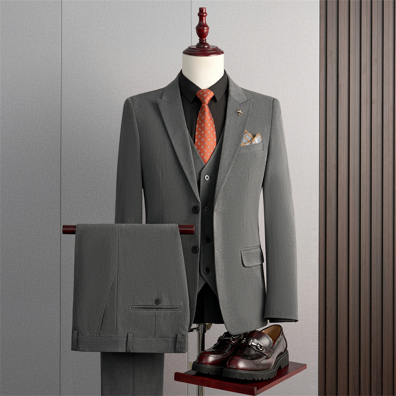 SJT99013西服套装男士三件套商务职业正装小西装韩版修身伴郎新郎结婚礼服-假模平铺(格栅) S 单西浅灰