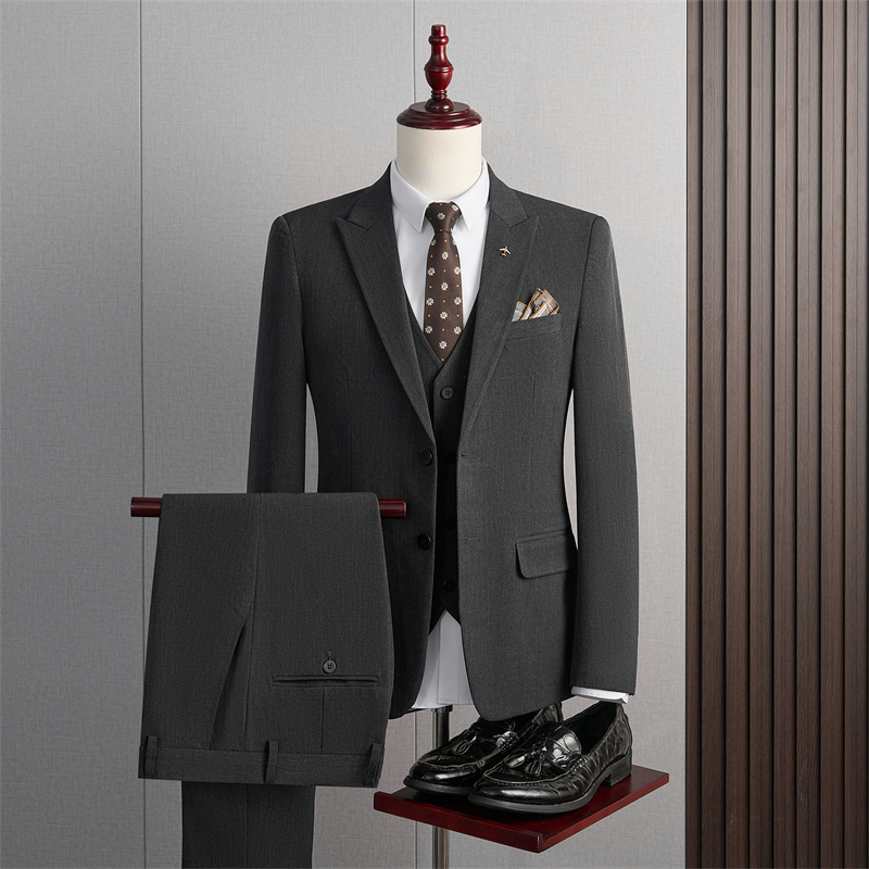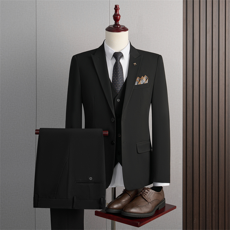 SJT99012西服套装男士三件套商务职业正装小西装韩版修身伴郎新郎结婚礼服-假模平铺(格栅) S 单西黑色