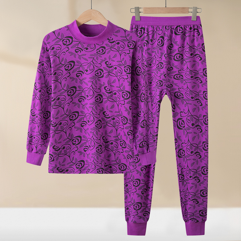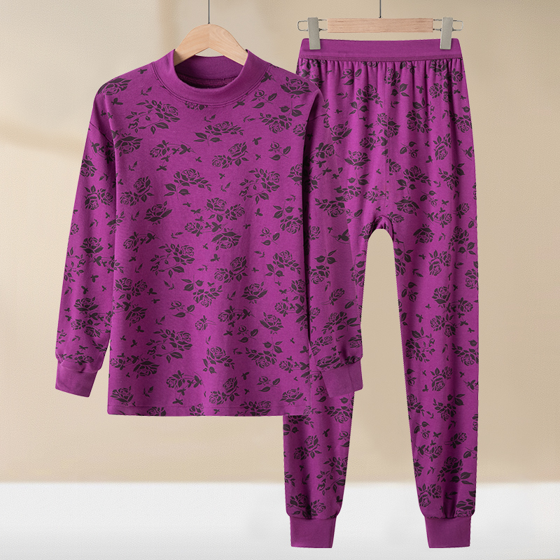 中老年女士冬季加绒保暖套装碎花长袖上衣裤子两件套大码舒适居家服 XL 灰紫(套装))