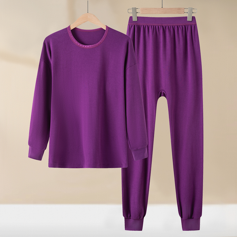 中老年女士冬季保暖套装棉衣外套与裤子加厚设计大码女装舒适居家服 2XL 紫色