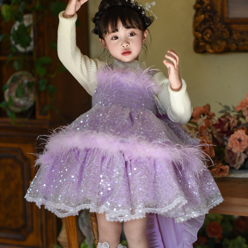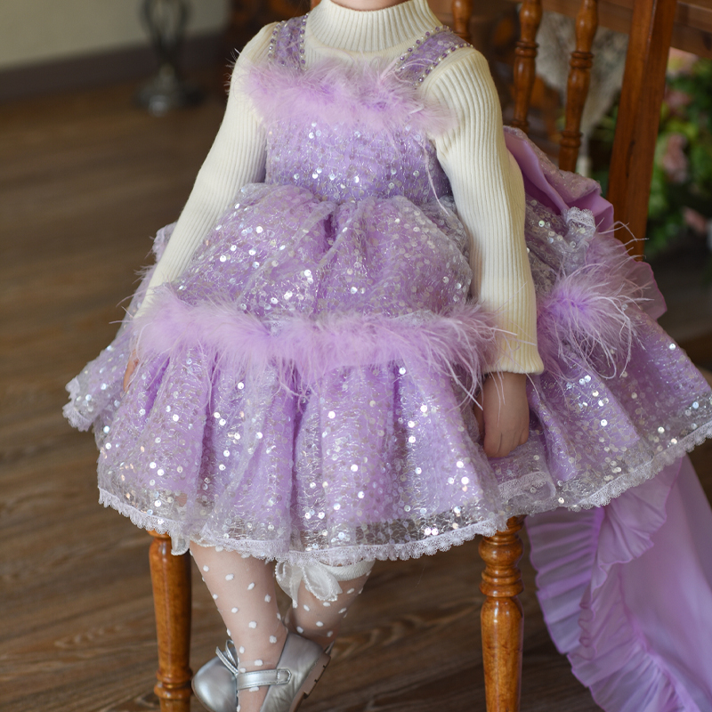 202220款女童秋冬新款亮片公主网纱大摆tutu裙可爱洋气潮流时尚