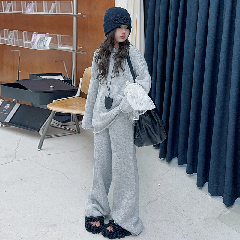 雅琪(原柒号童装)&绿色毛衣破洞阔腿裤套装