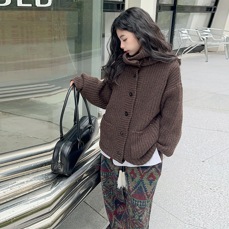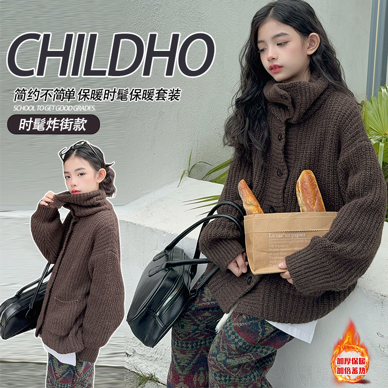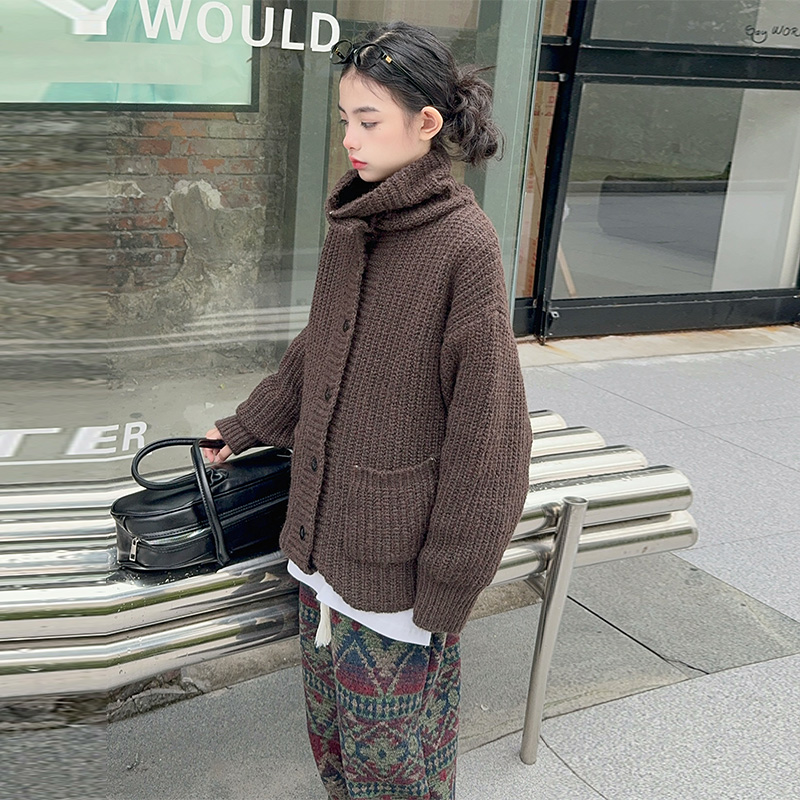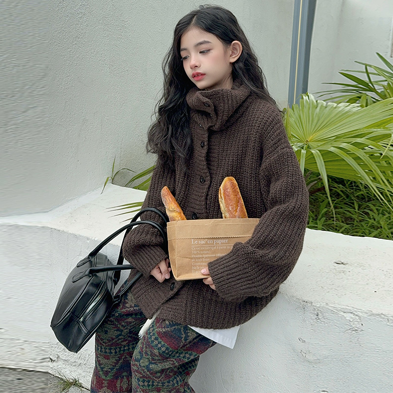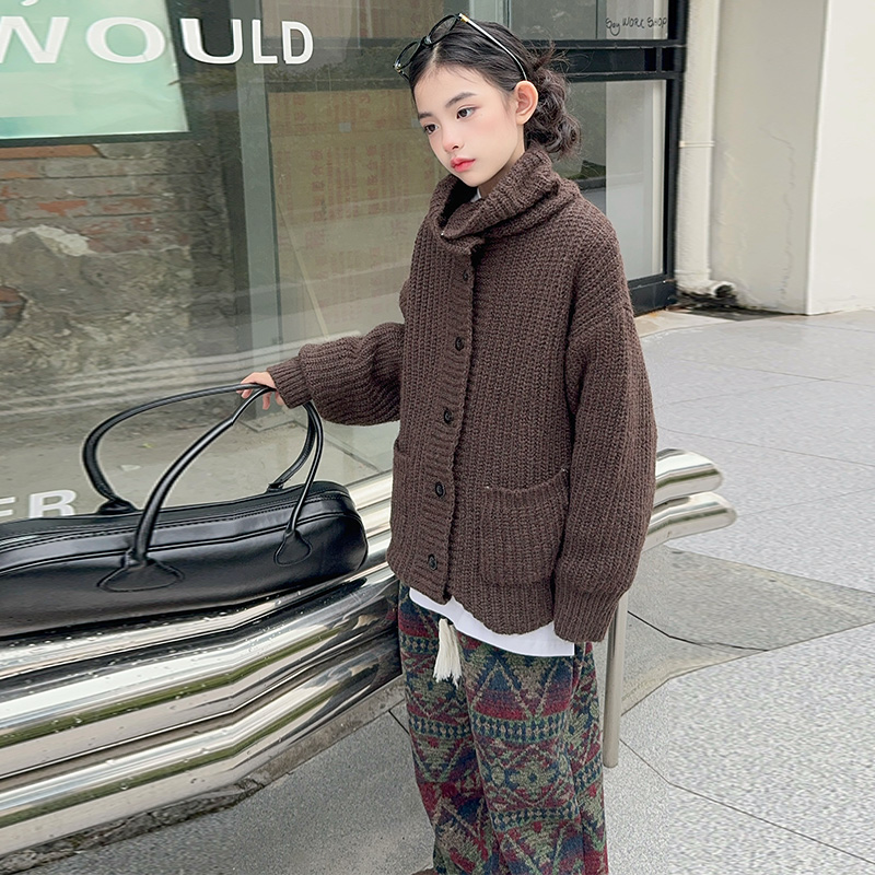 雅琪&25Q20翻领开衫毛衣 120cm 咖色