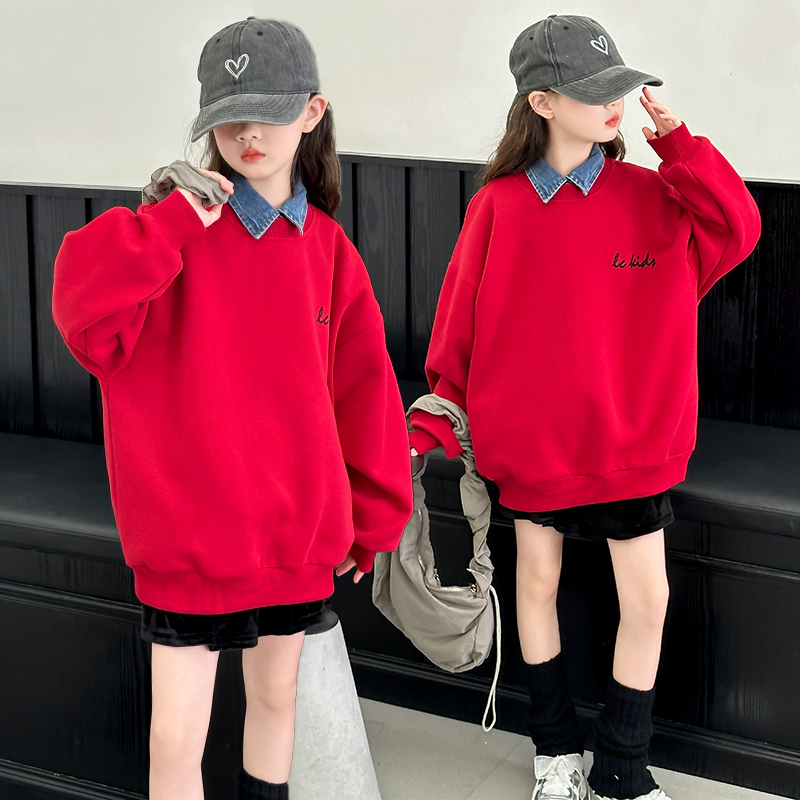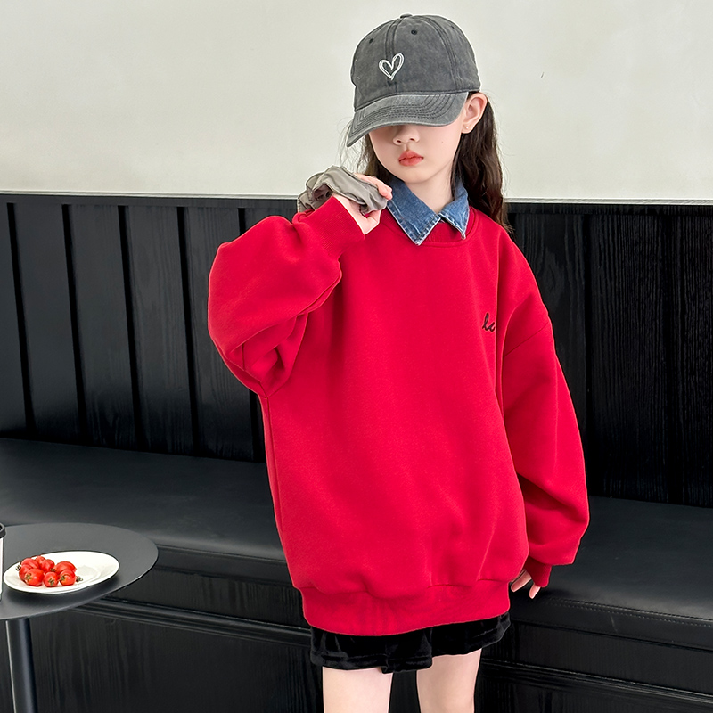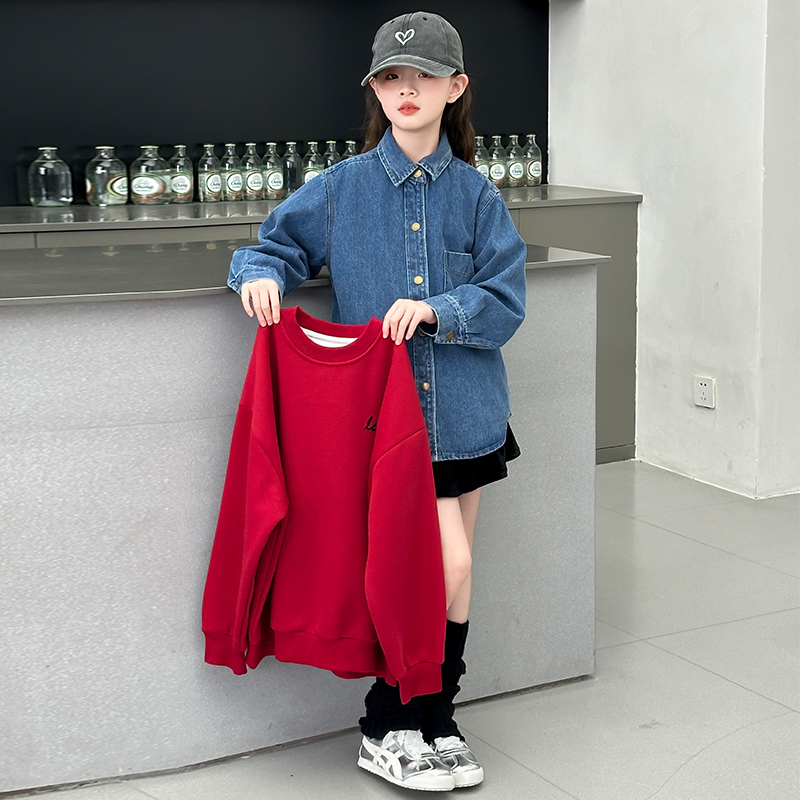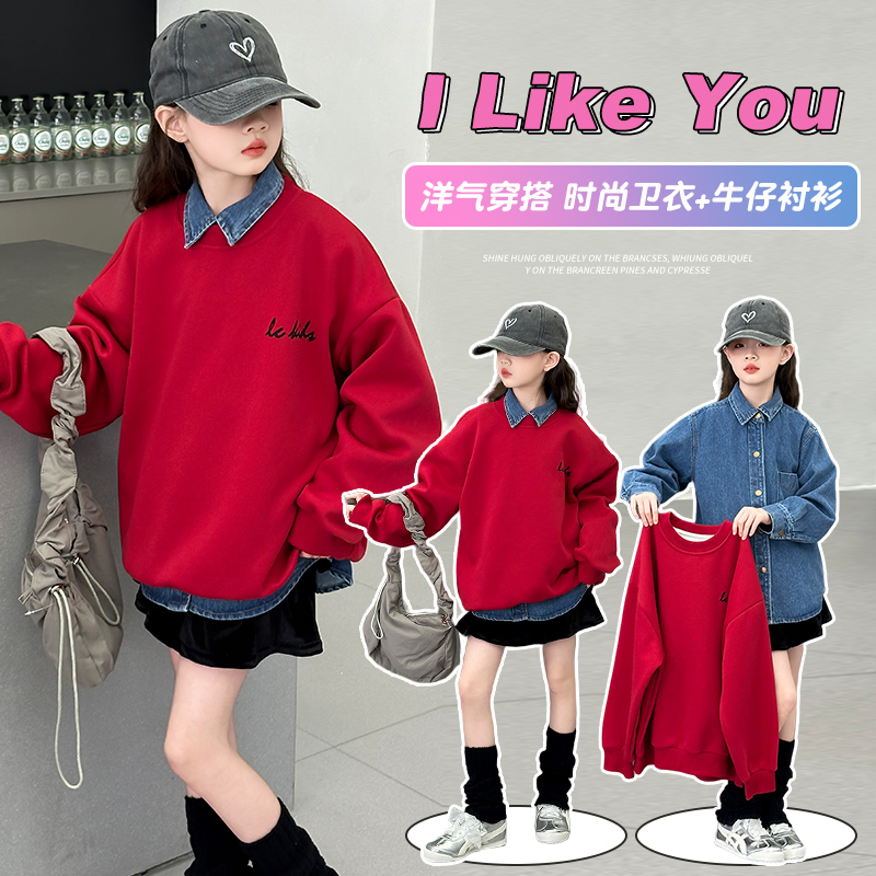 乐橙-LC5821安可拉红卫衣牛仔衬衫套装