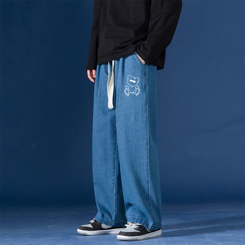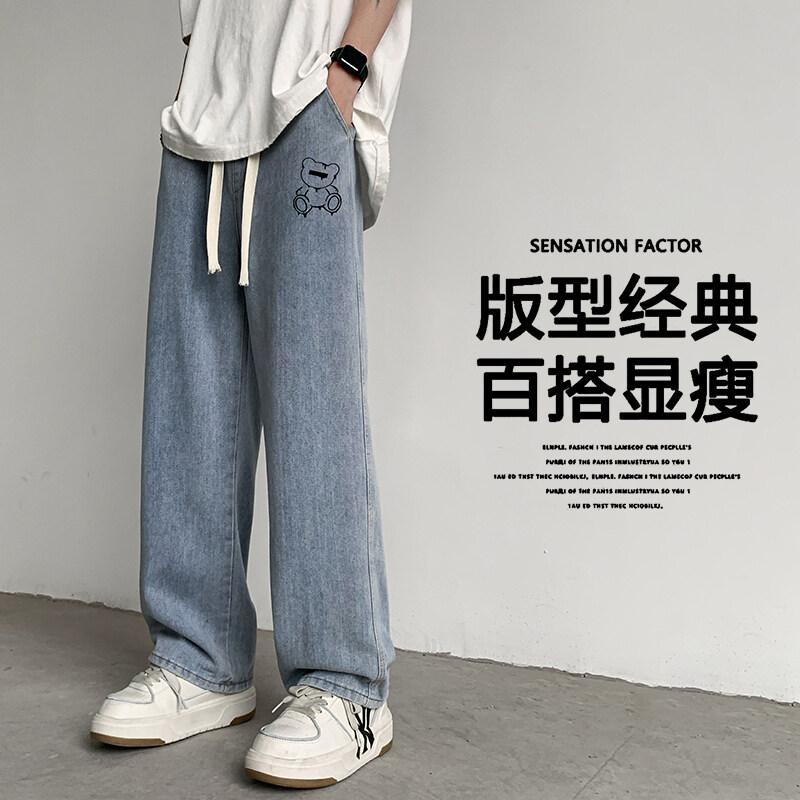 2251牛仔裤男春秋季宽松直筒休闲韩版阔腿长裤子 M 浅蓝色