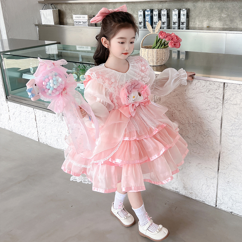 金利丽&8552洛丽塔卡通凯蒂猫粉色公主裙 100cm 裙子加拖尾