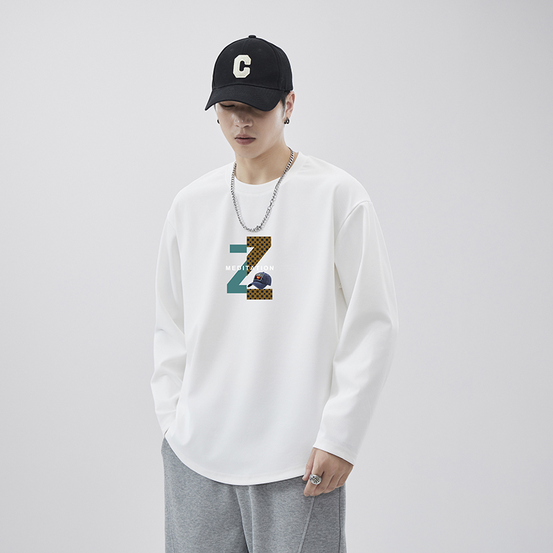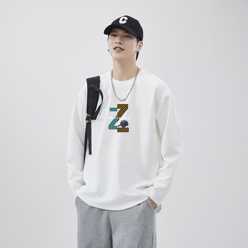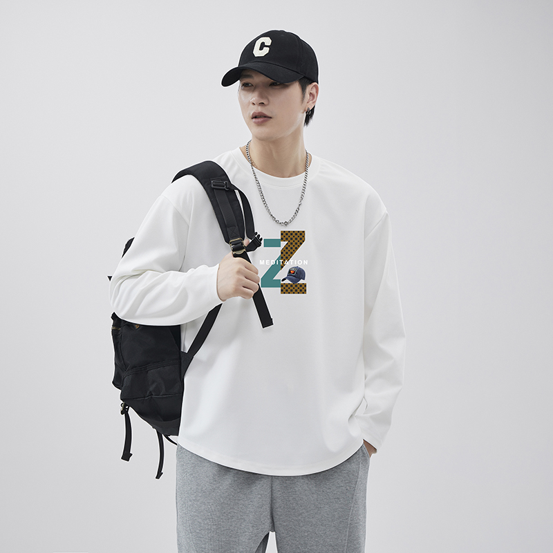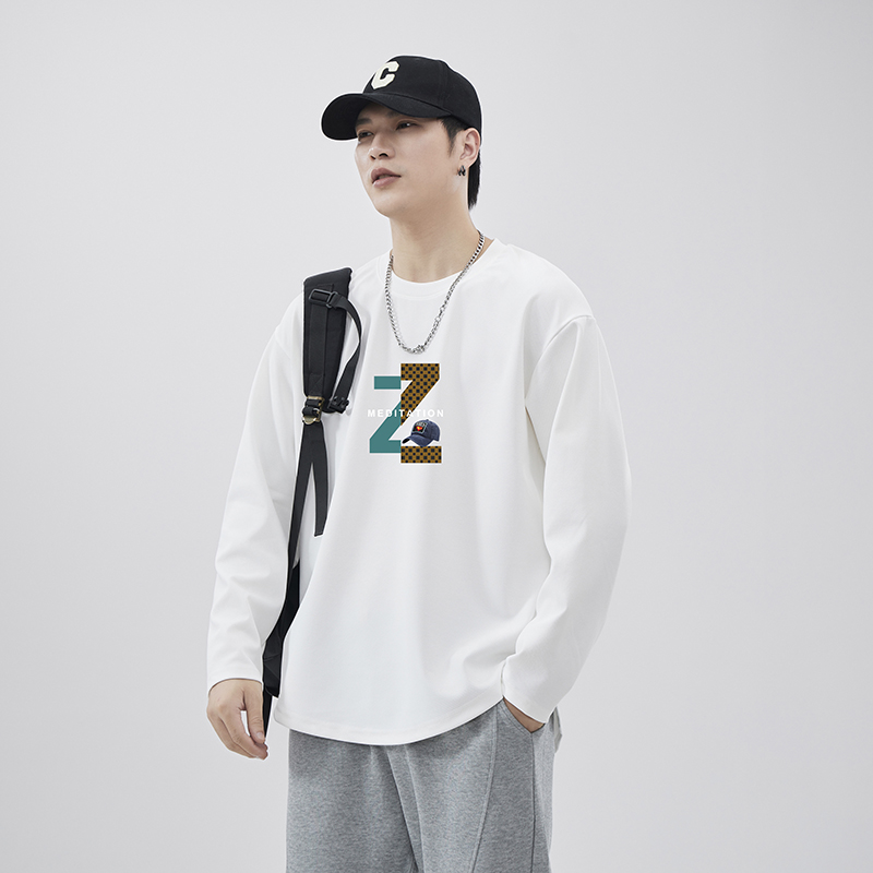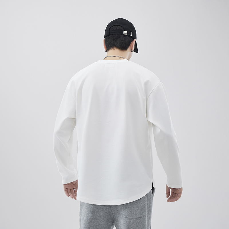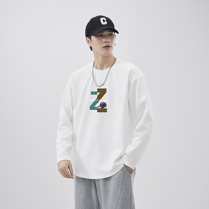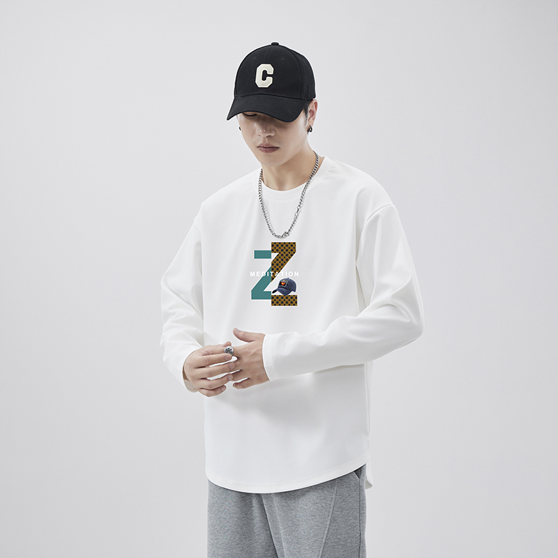 33721款潮流休闲简约百搭长袖重磅打底衫-白底留头