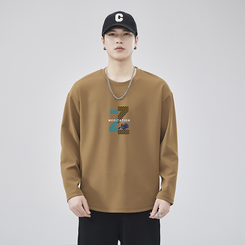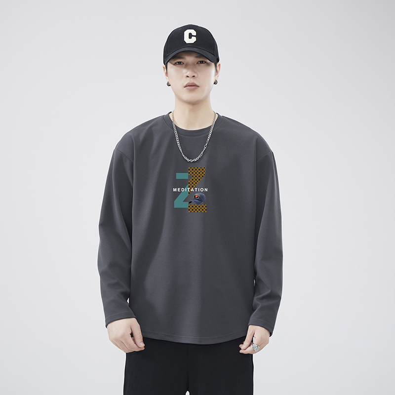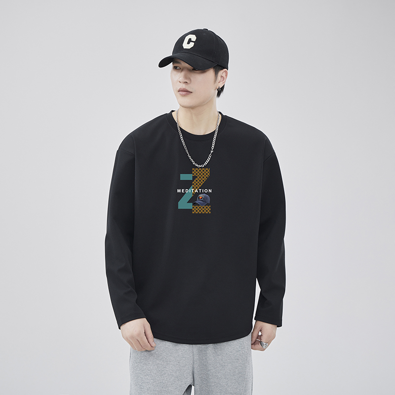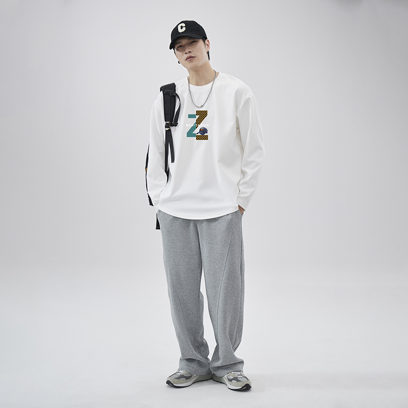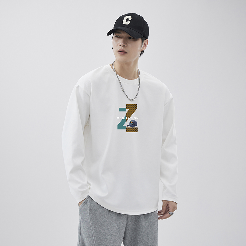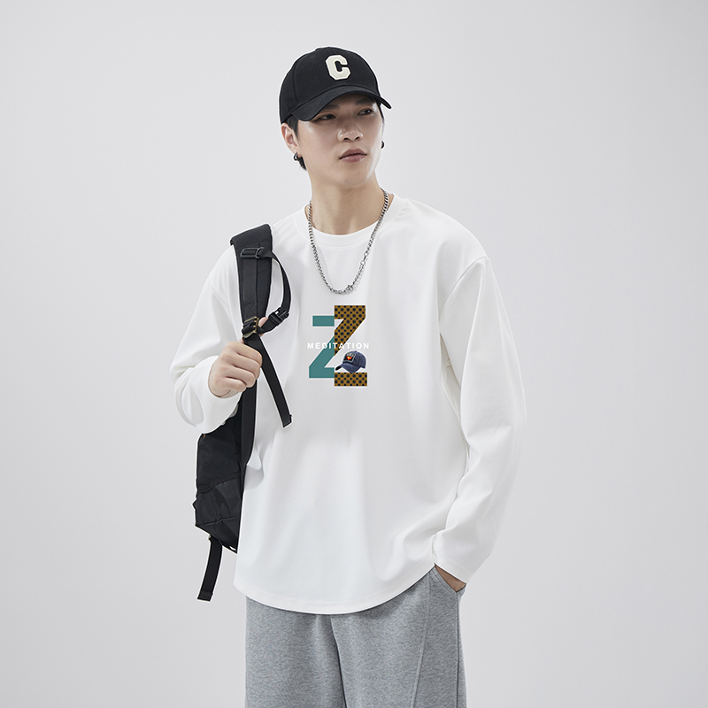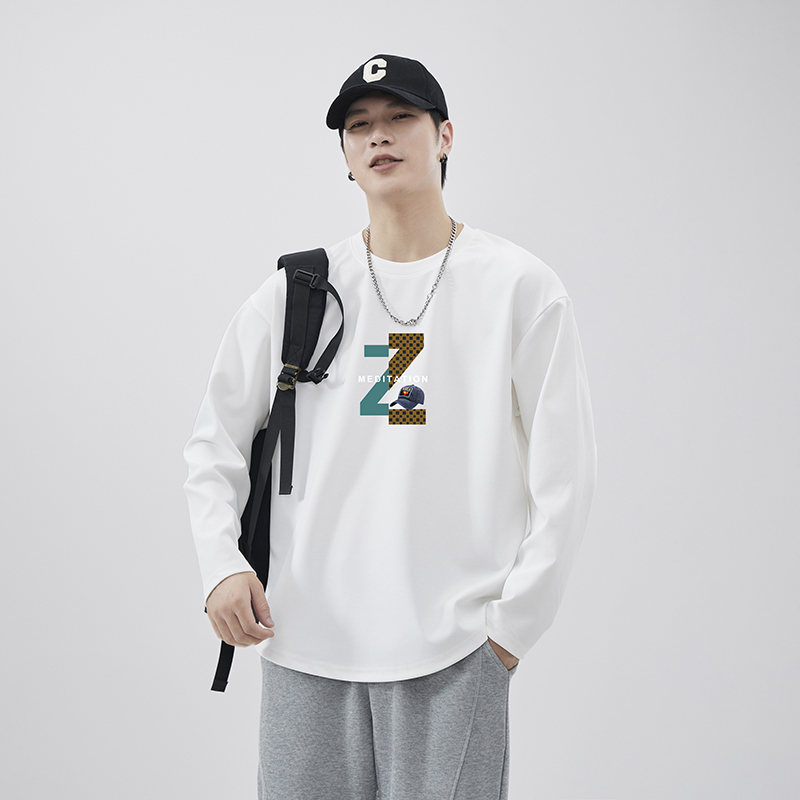33721款潮流休闲简约百搭长袖重磅打底衫-白底留头