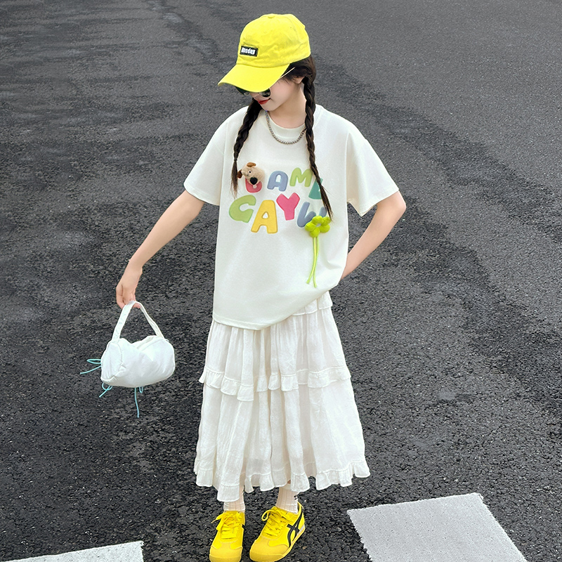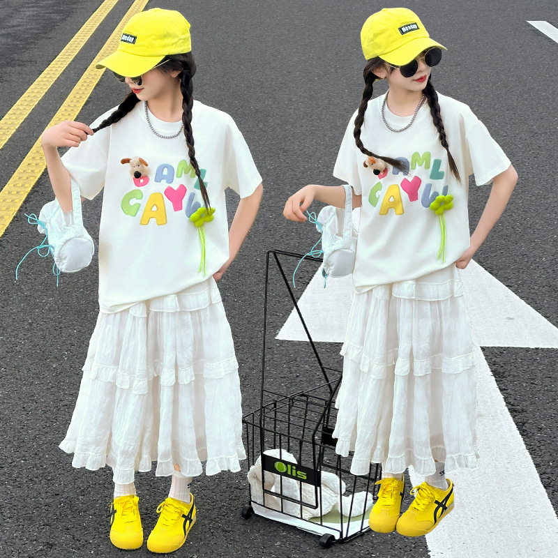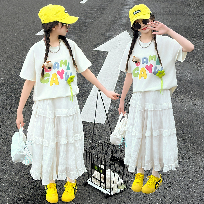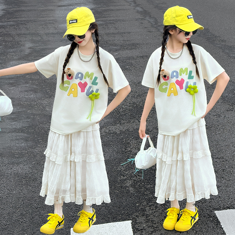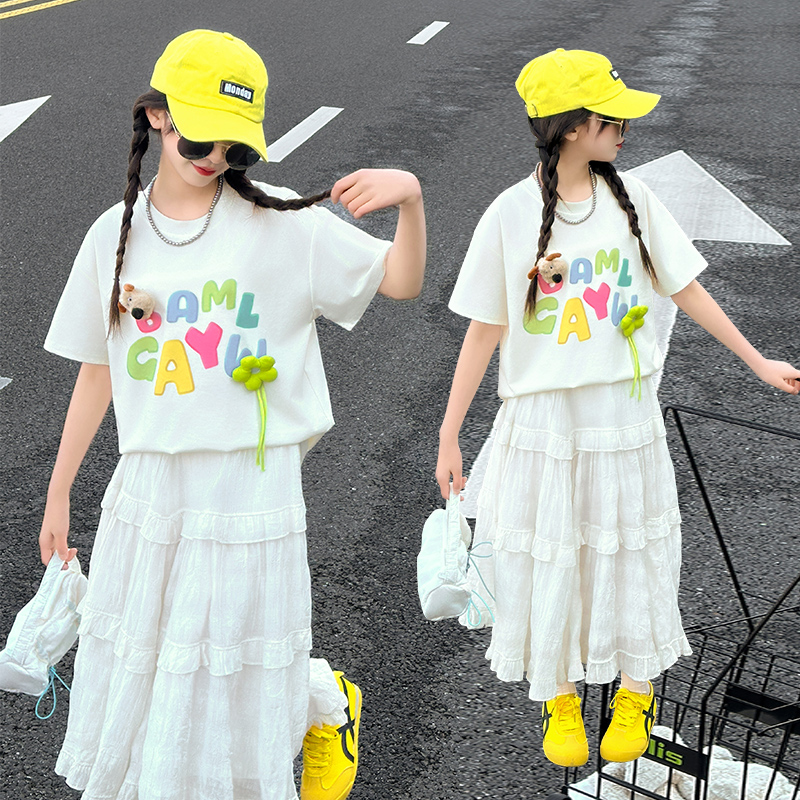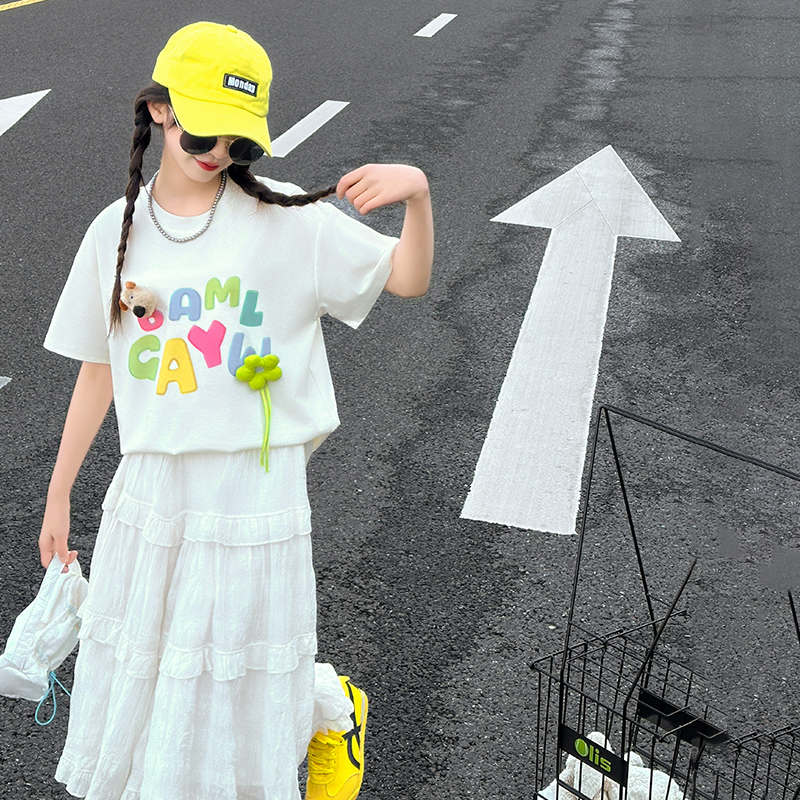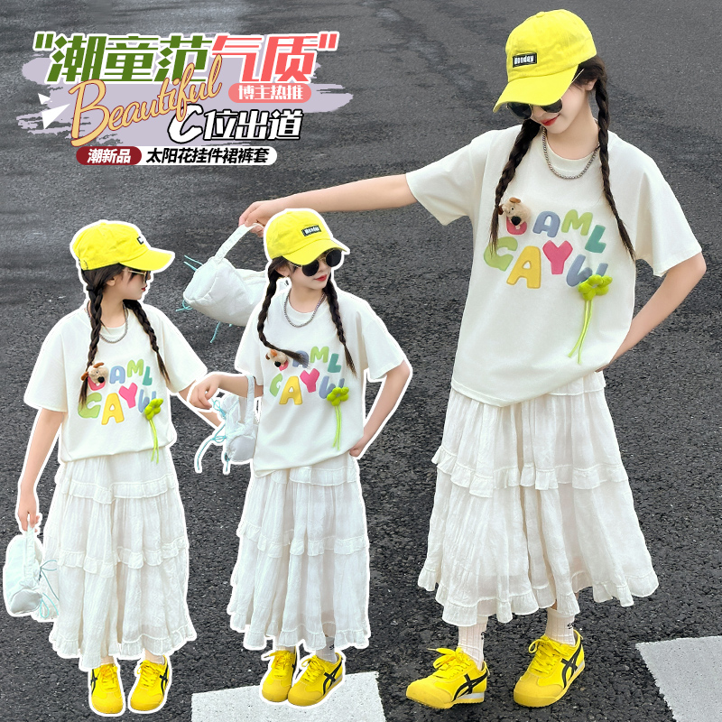 成绩单-2600太阳花挂件半身裙套装 120 T恤加半身裙套装