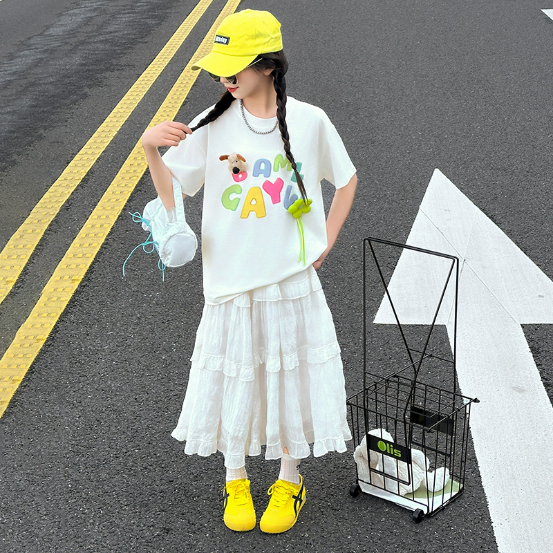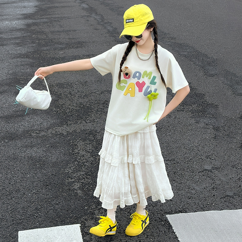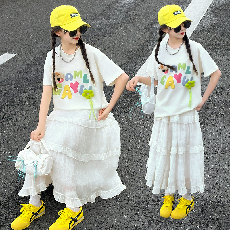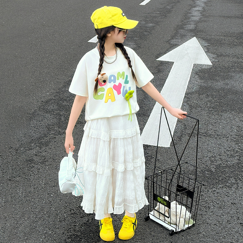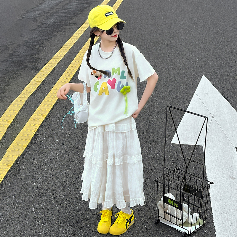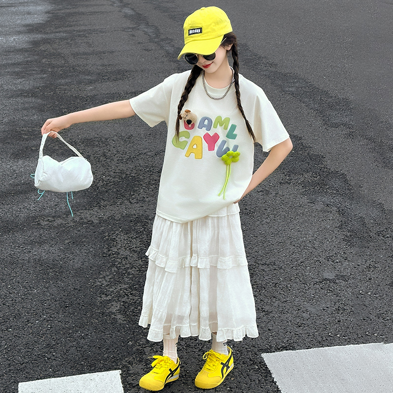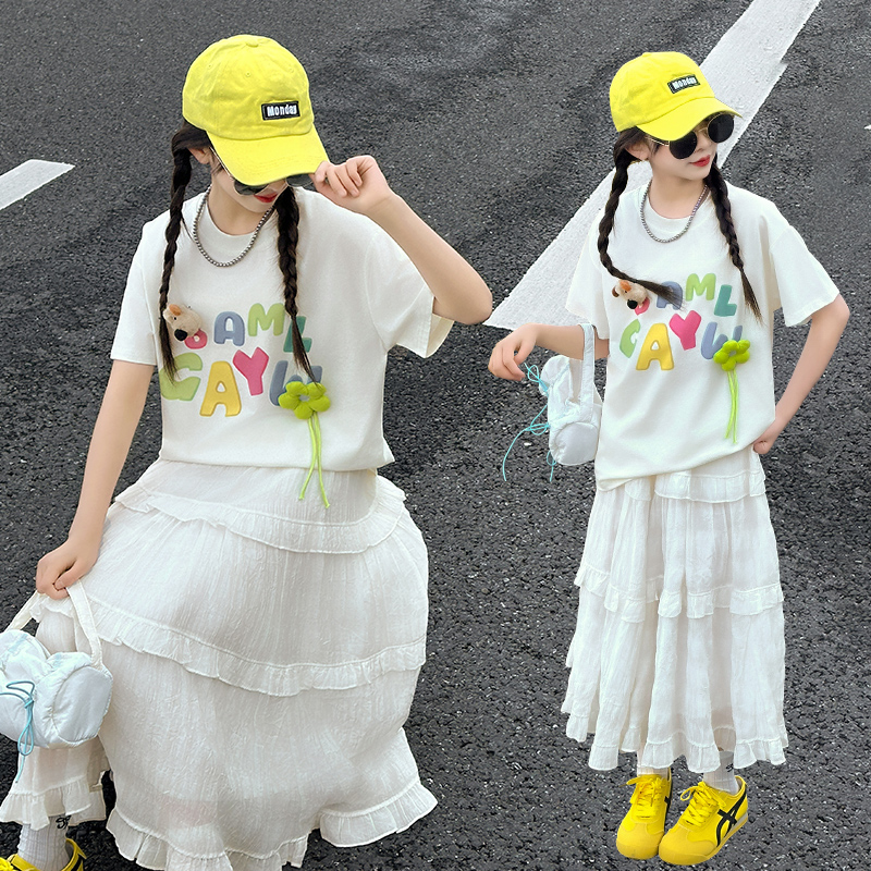 成绩单-2600太阳花挂件半身裙套装 120 T恤加半身裙套装