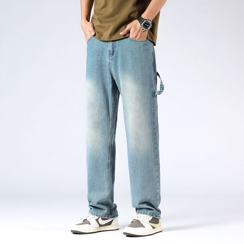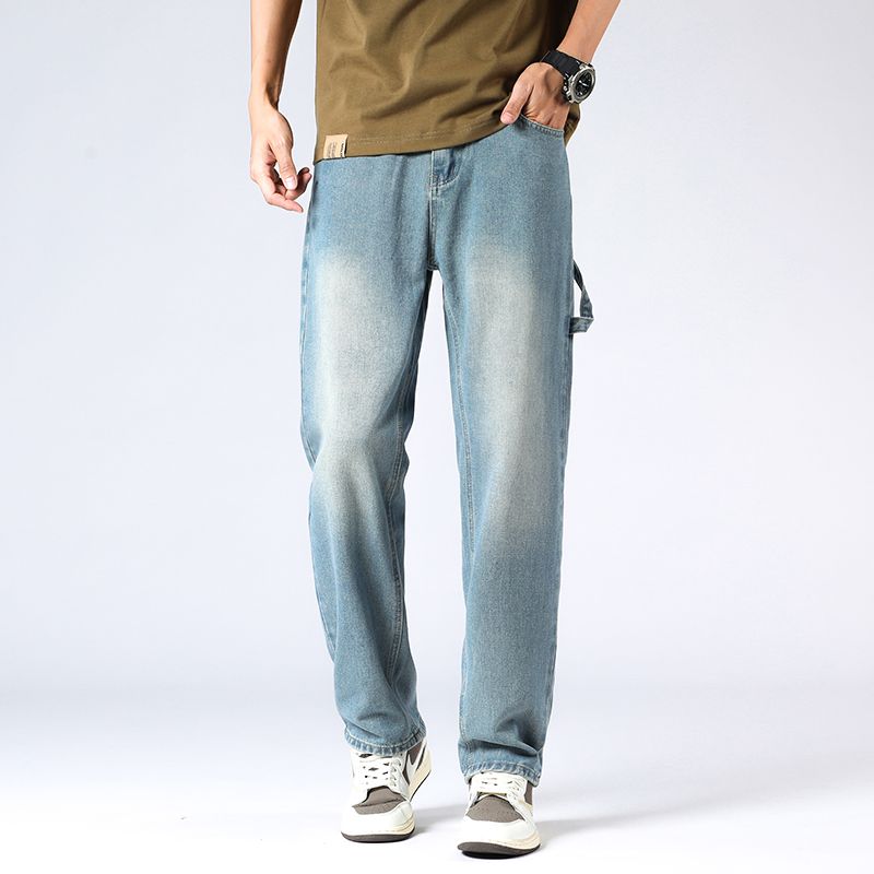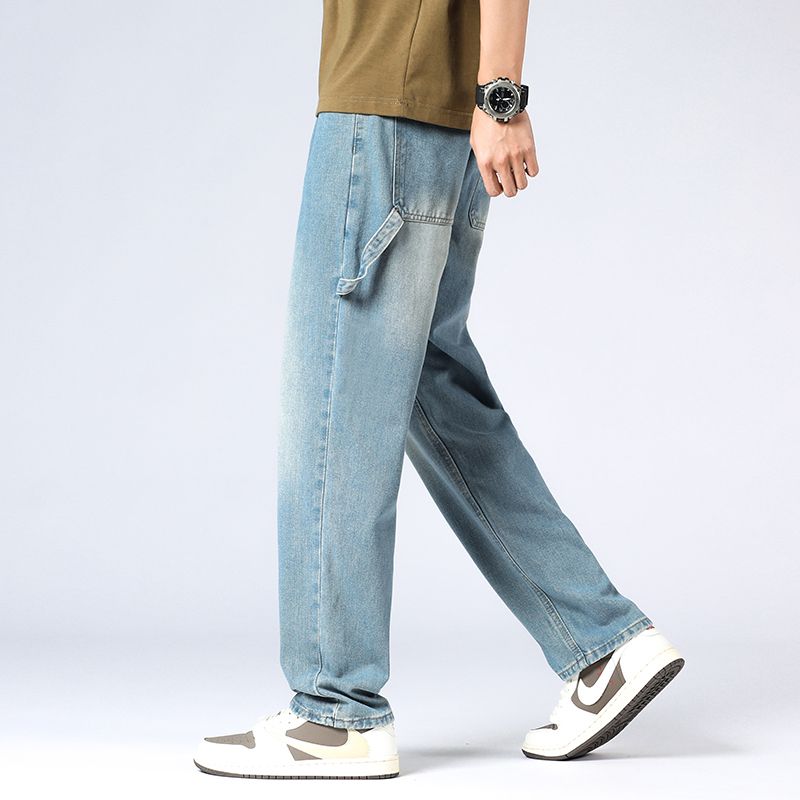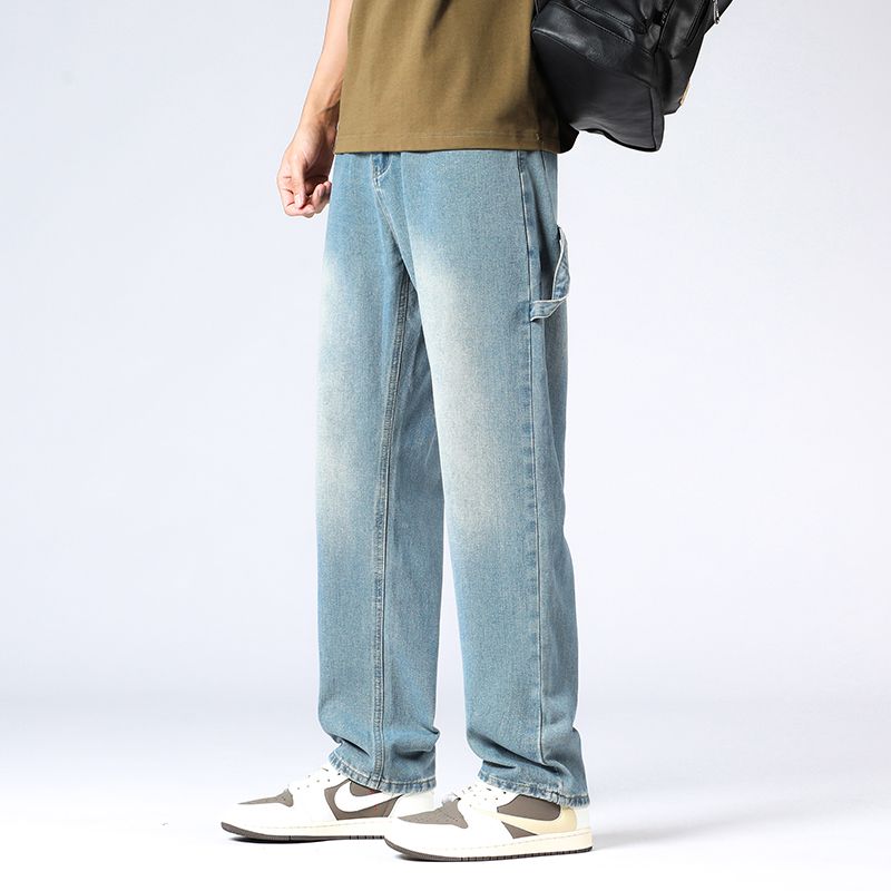 A03春夏新款牛仔裤男士宽松弹力直筒锥型裤高端潮牌显瘦百搭长裤-无影墙