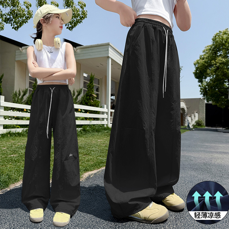 新款潮童高腰垂感盘扣阔腿裤 120 黑色
