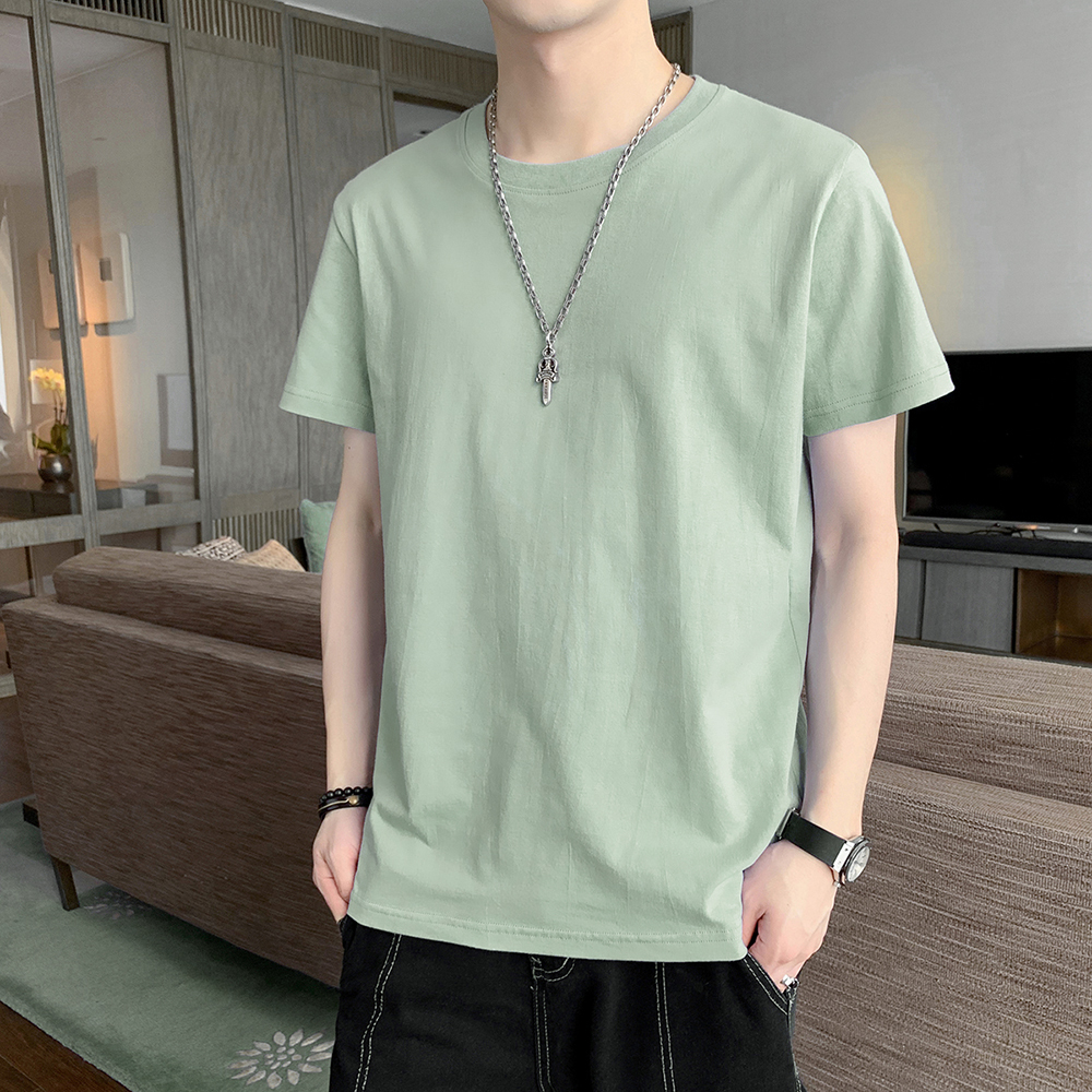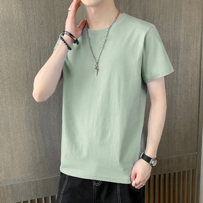 200克短袖T恤2025春夏季新款男款简约圆领潮流时尚百搭男纯棉上衣 M 浅绿色