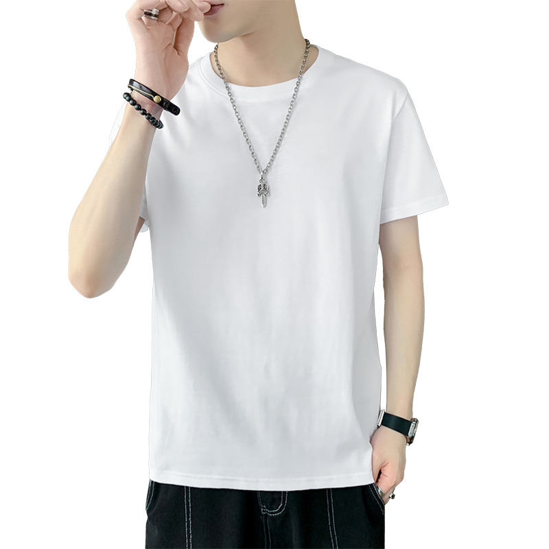 200克短袖T恤2025春夏季新款男款简约圆领潮流时尚百搭男纯棉上衣 M 白色