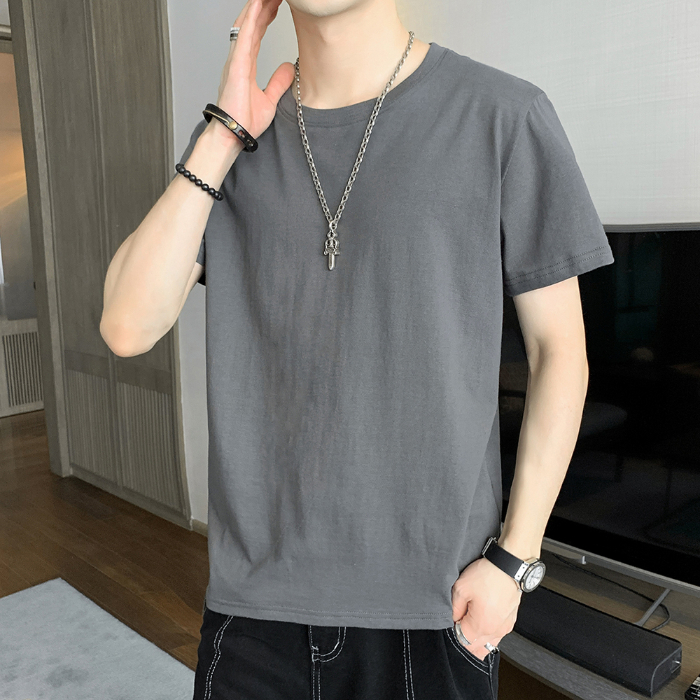 200克短袖T恤2025春夏季新款男款简约圆领潮流时尚百搭男纯棉上衣 M 深灰色