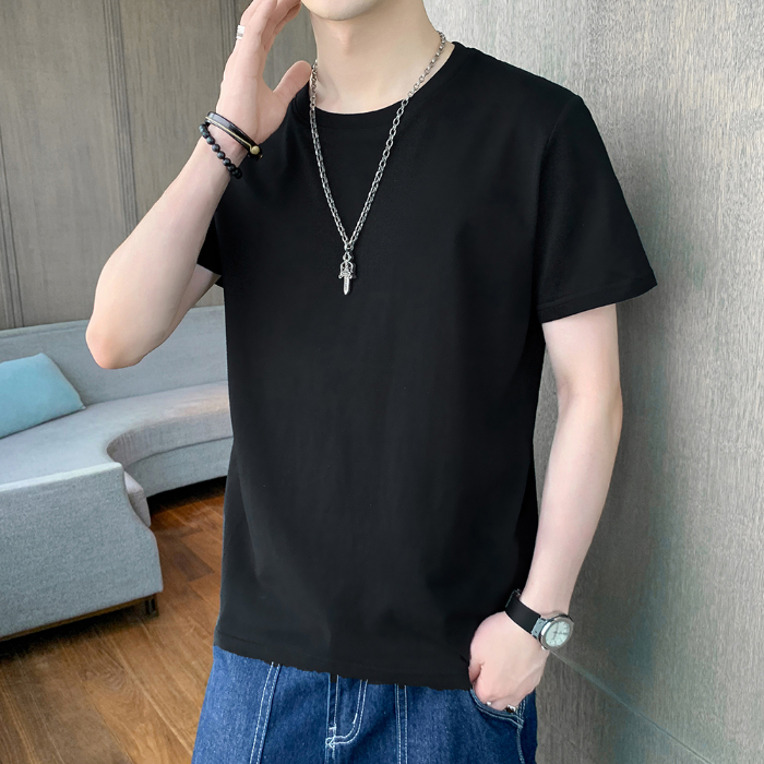 200克短袖T恤2025春夏季新款男款简约圆领潮流时尚百搭男纯棉上衣