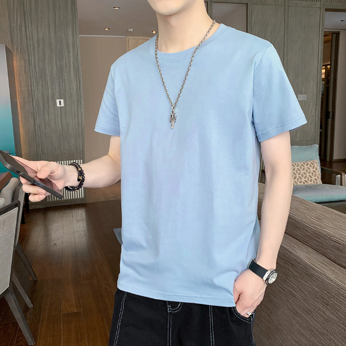 200克短袖T恤2025春夏季新款男款简约圆领潮流时尚百搭男纯棉上衣 M 雾霾蓝