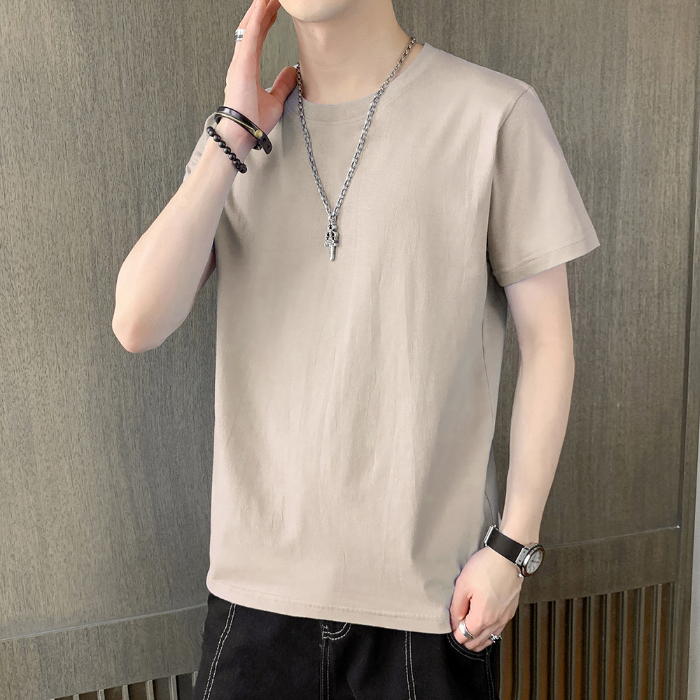 200克短袖T恤2025春夏季新款男款简约圆领潮流时尚百搭男纯棉上衣 M 卡其色