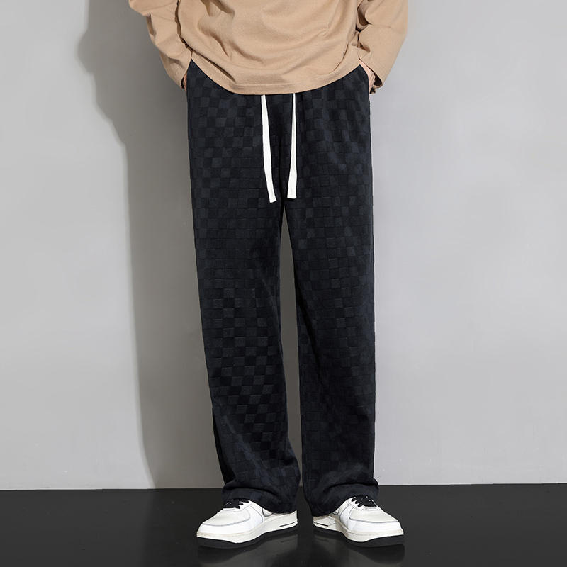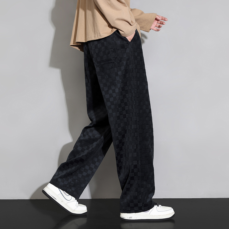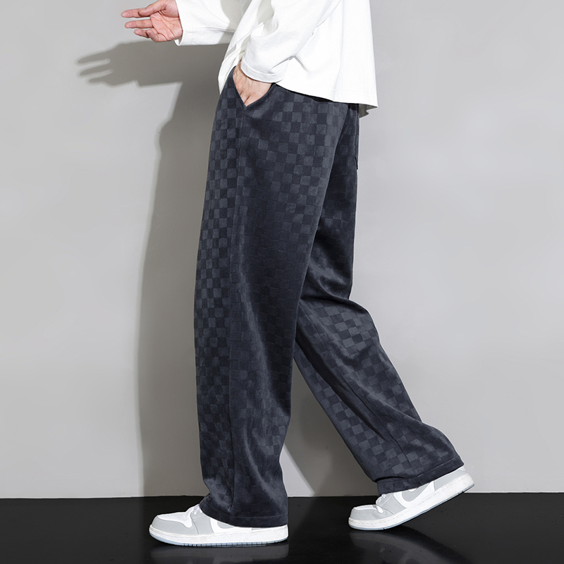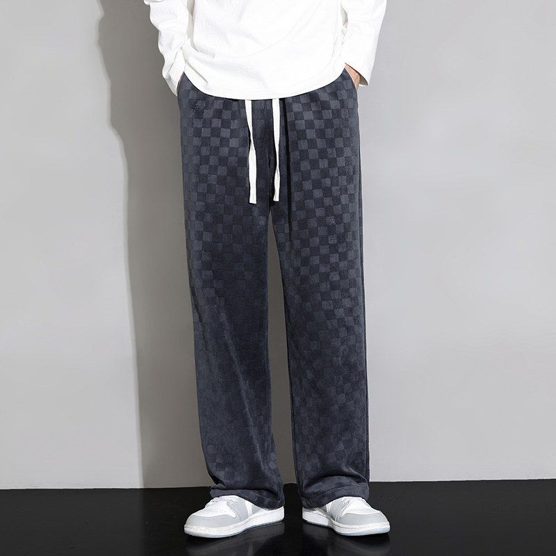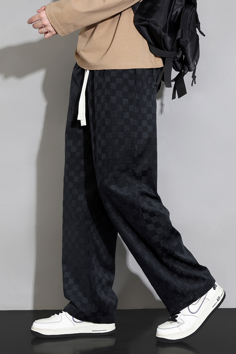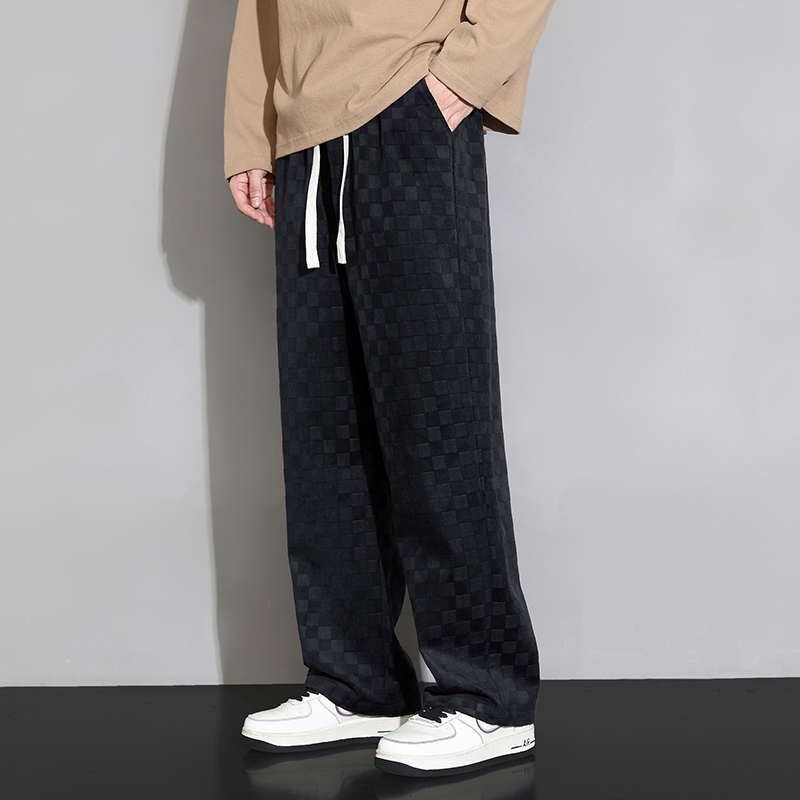2369 P38 2025秋款棋盘格直筒阔腿裤男宽松垂感潮牌休闲长裤 YOA M【85-110斤】 深灰色