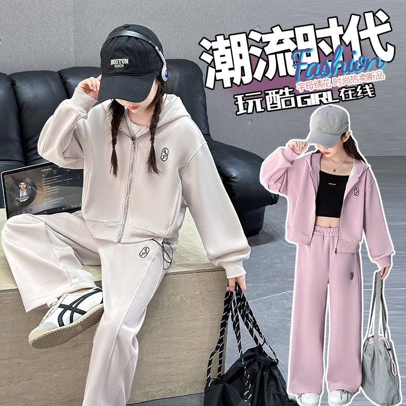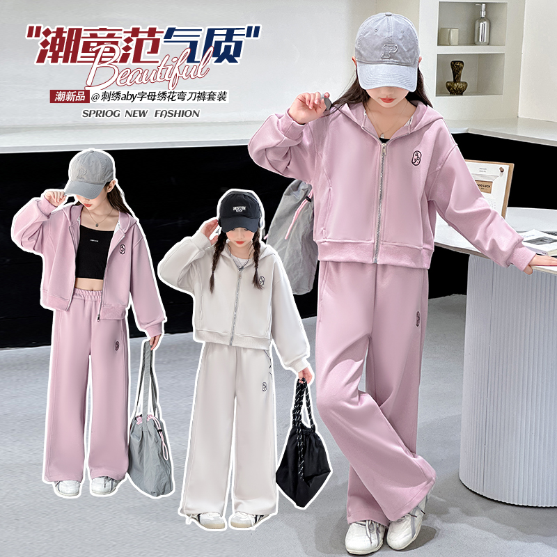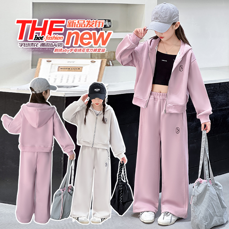 成绩单&cjd2508刺绣aby字母弯刀裤套装 120 粉色