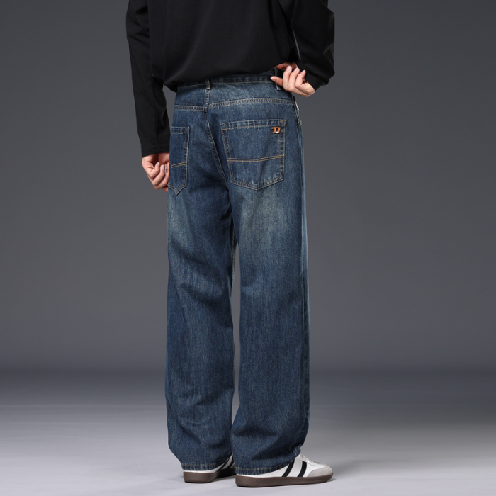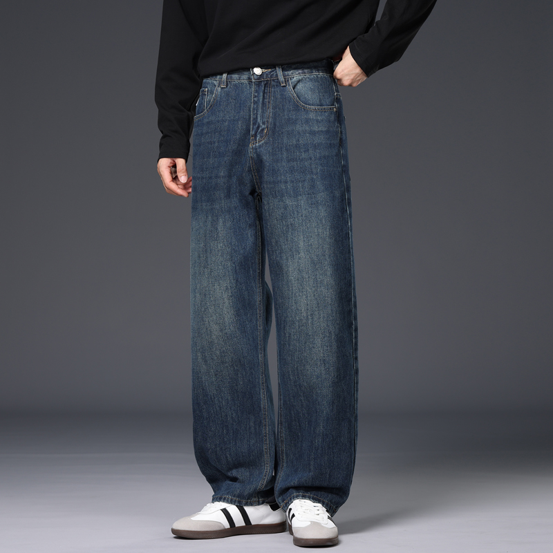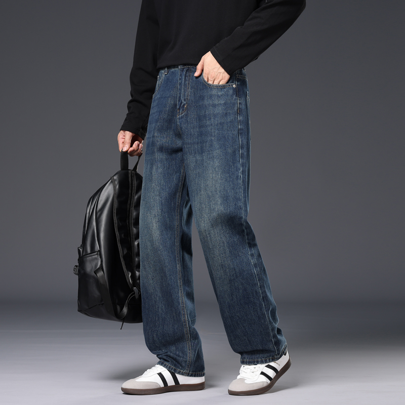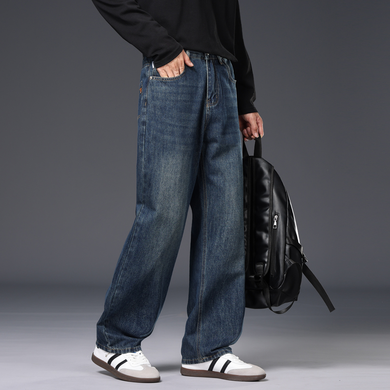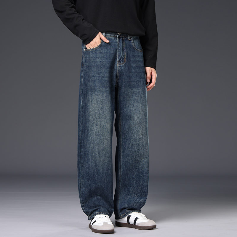 2025年版秋冬新款厚款直筒宽松阔腿男士牛仔裤大牛垂感拖地裤潮 28 复古蓝