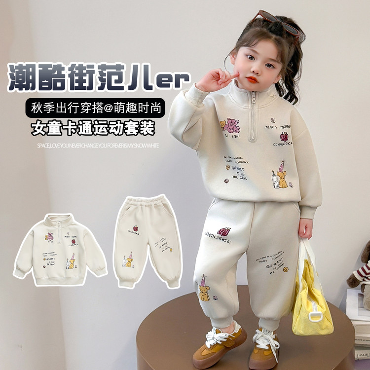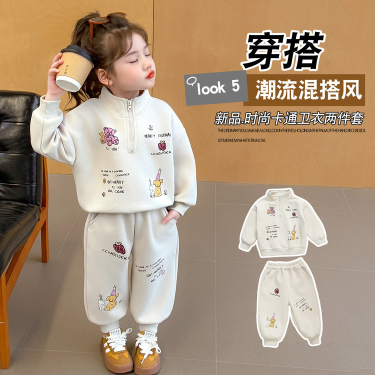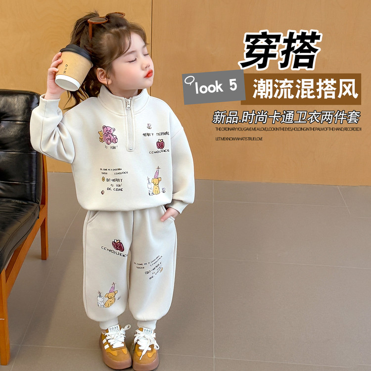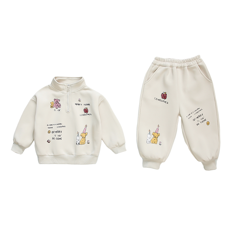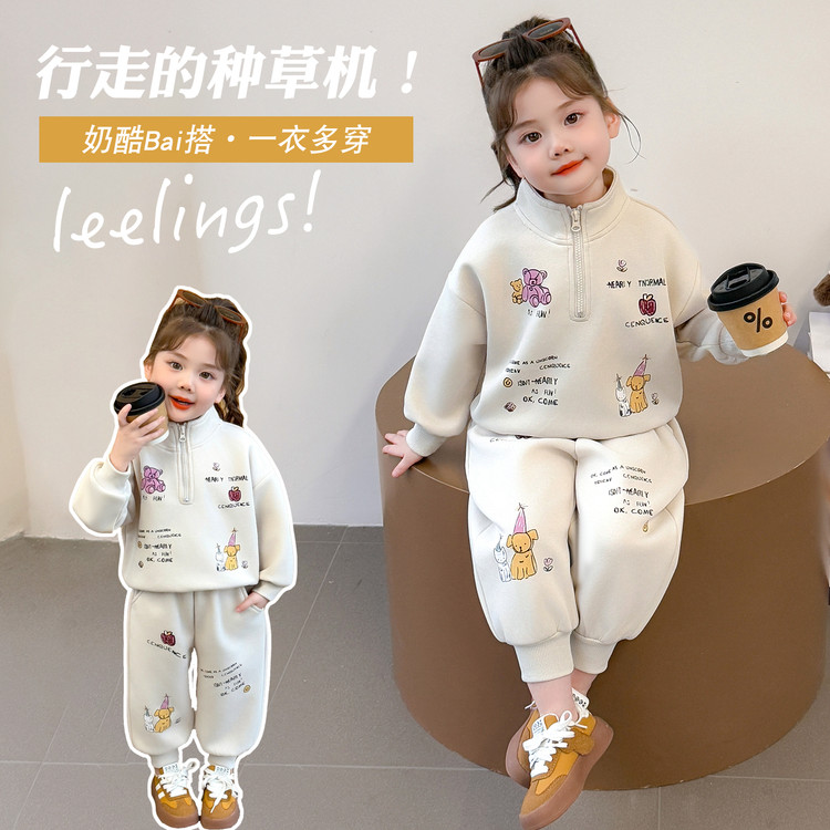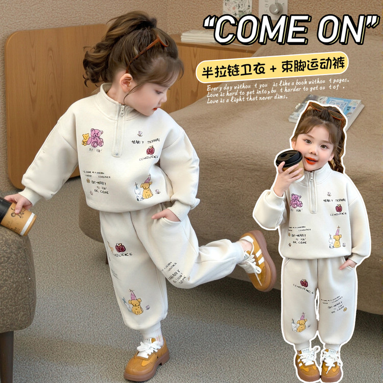 贝小贝&波浪贴布加绒套装 90cm 粉色