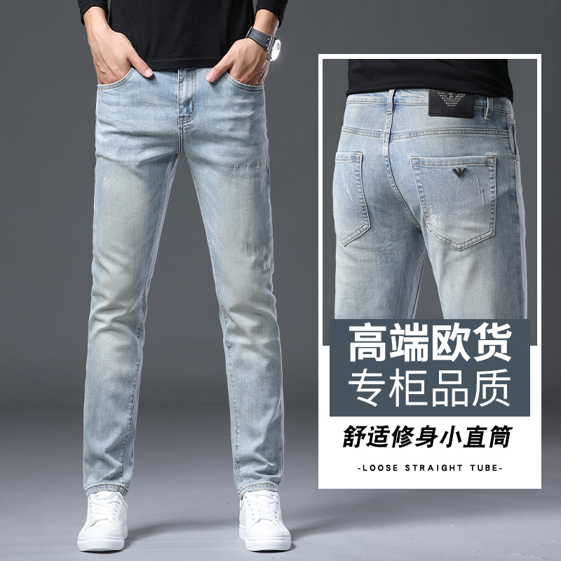 2025年秋冬季新款浅蓝色高端牛仔裤男士秋季宽松百搭潮牌休闲长裤 28 浅蓝色