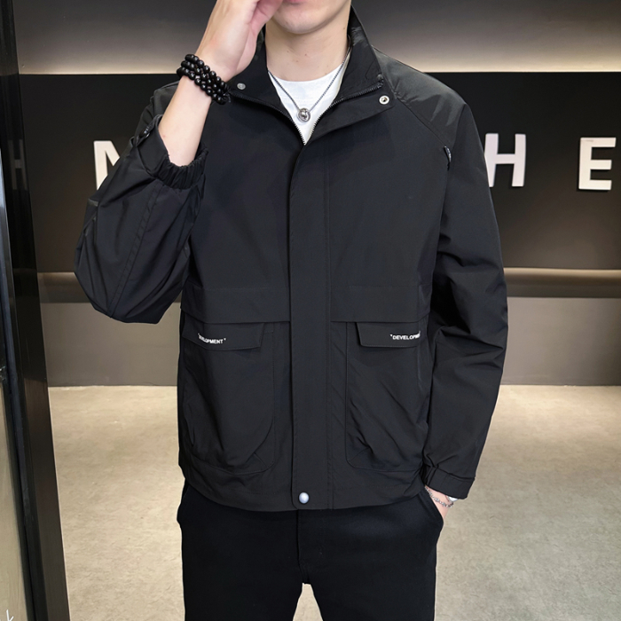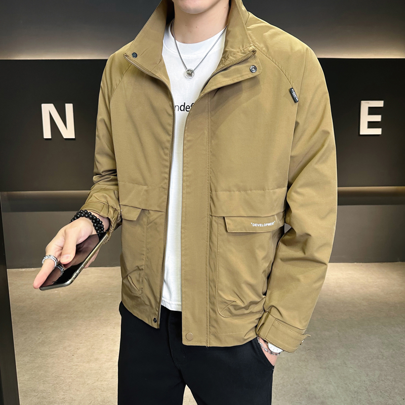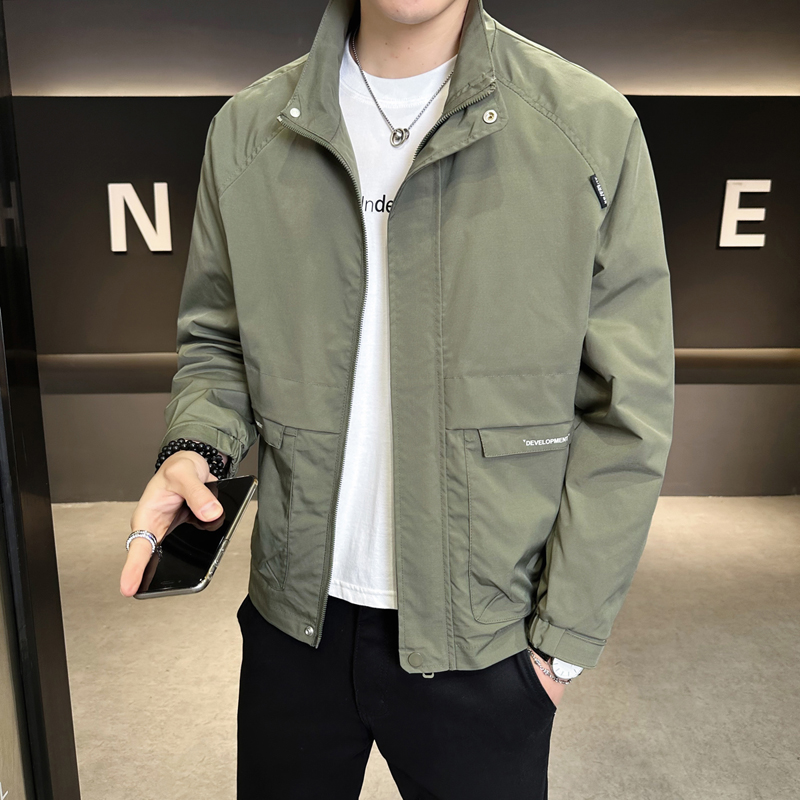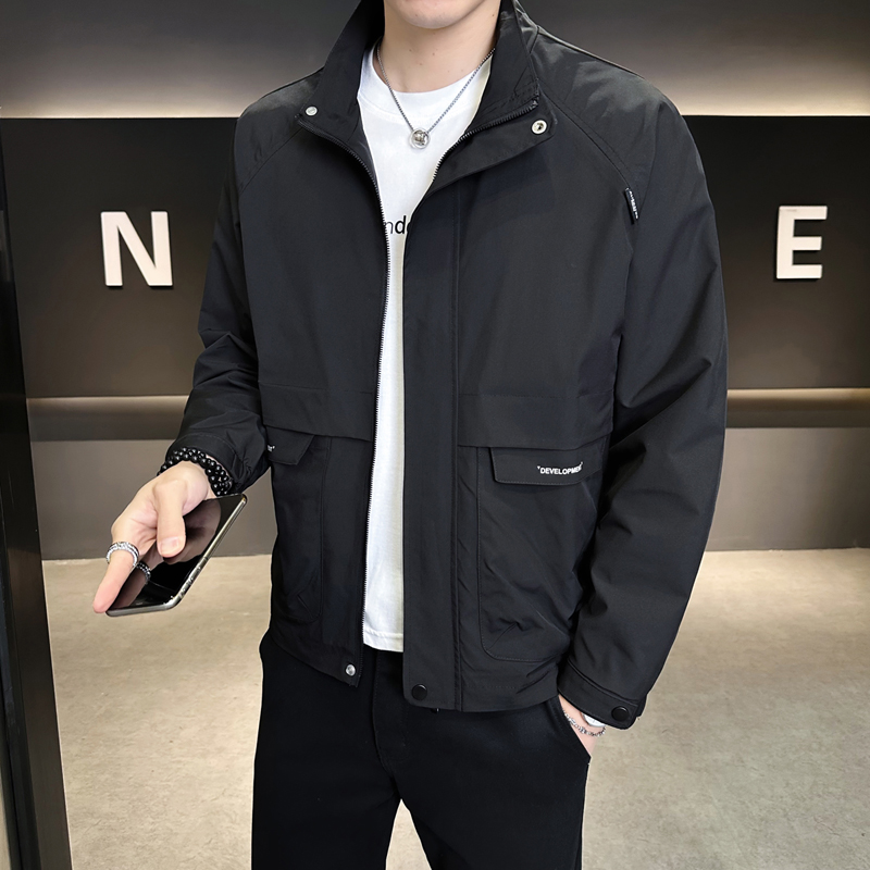 休闲立领夹克男2025春季新款潮流痞帅百搭简约工装外套上衣