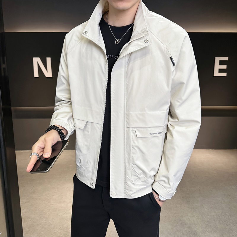 春季新款日系户外运动百搭立领潮牌男士外套休闲夹克 M 米白色
