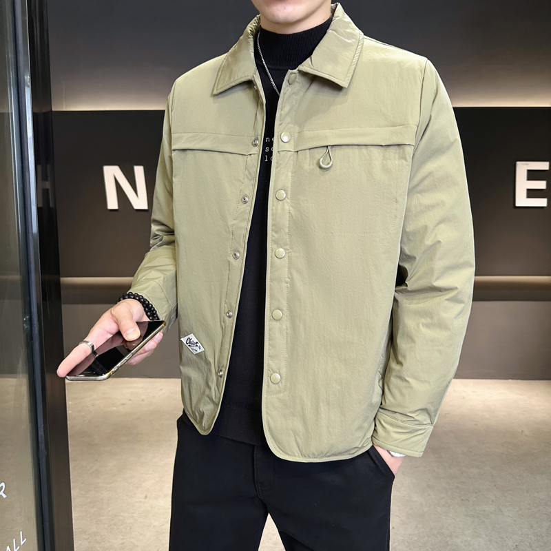 简约休闲男外套夹克翻领男士时尚帅气美式上衣外套 M 豆绿