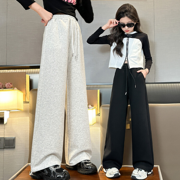 新款潮童高腰垂感盘扣阔腿裤