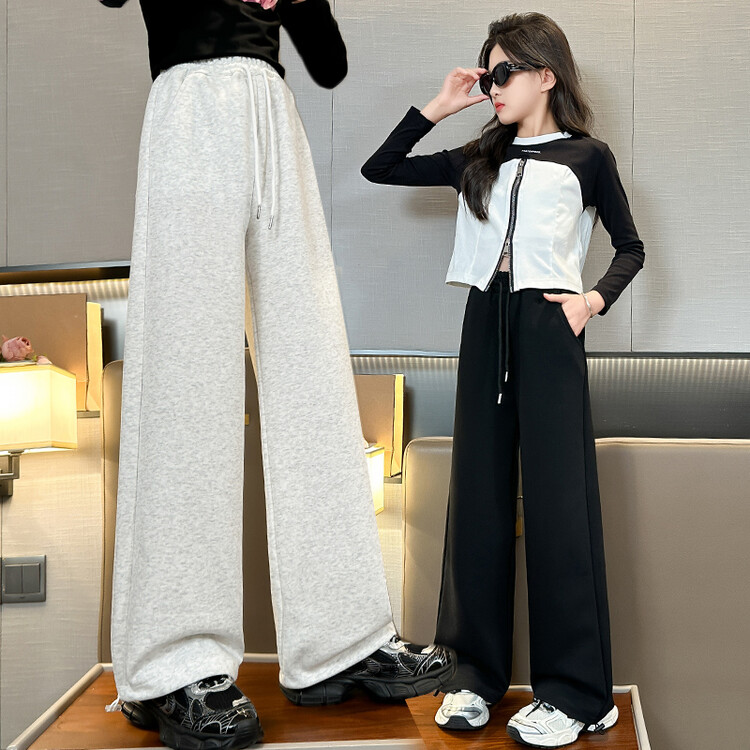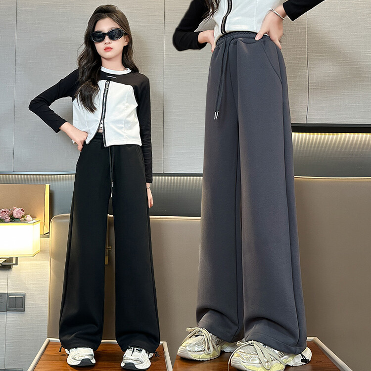 新款潮童A字加绒加厚阔腿裤