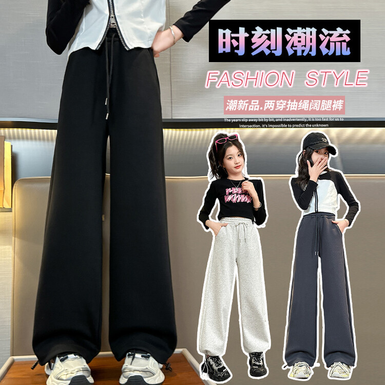 笑笑鼠&两穿抽绳阔腿裤新款时尚洋气抽绳阔腿裤
