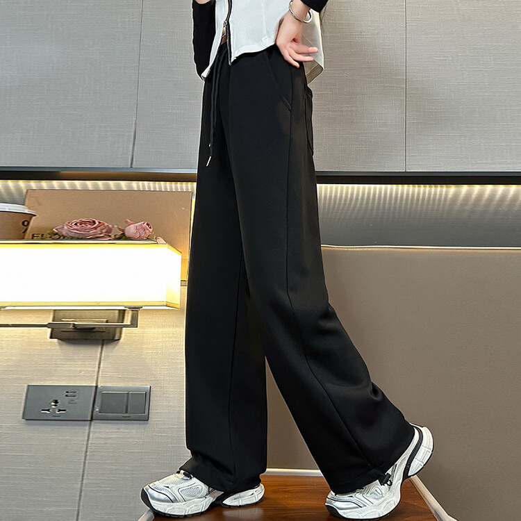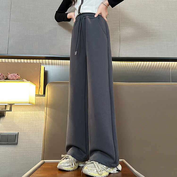 新款百搭直筒字母腰加绒加厚阔腿裤