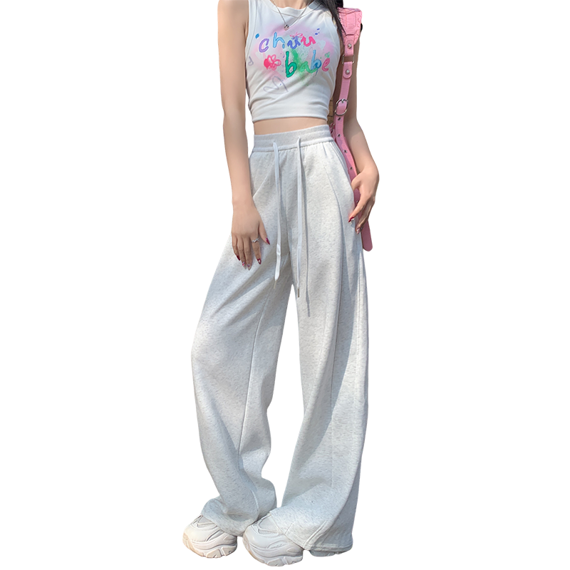 炭灰色运动裤女春秋2025新款休闲小个子lulu同款显瘦直筒阔腿卫裤 S 白灰