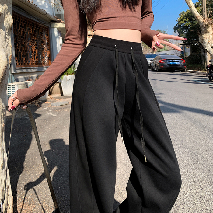 羊绒阔腿裤女秋冬高级感2025新款高腰阔腿裤宽松显瘦休闲百搭裤子 S 2294 黑色