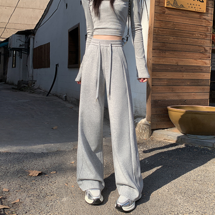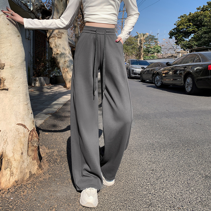 炭灰色运动裤女春秋2025新款休闲小个子lulu同款显瘦直筒阔腿卫裤