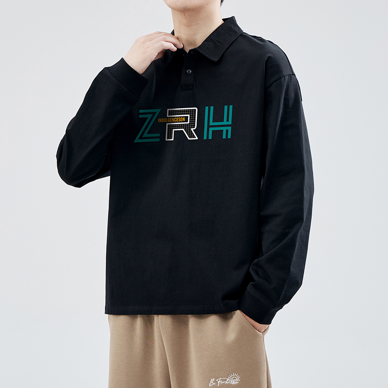 主推纯棉polo衫长袖男士秋季新款翻领高级感宽松透气潮牌T恤男装