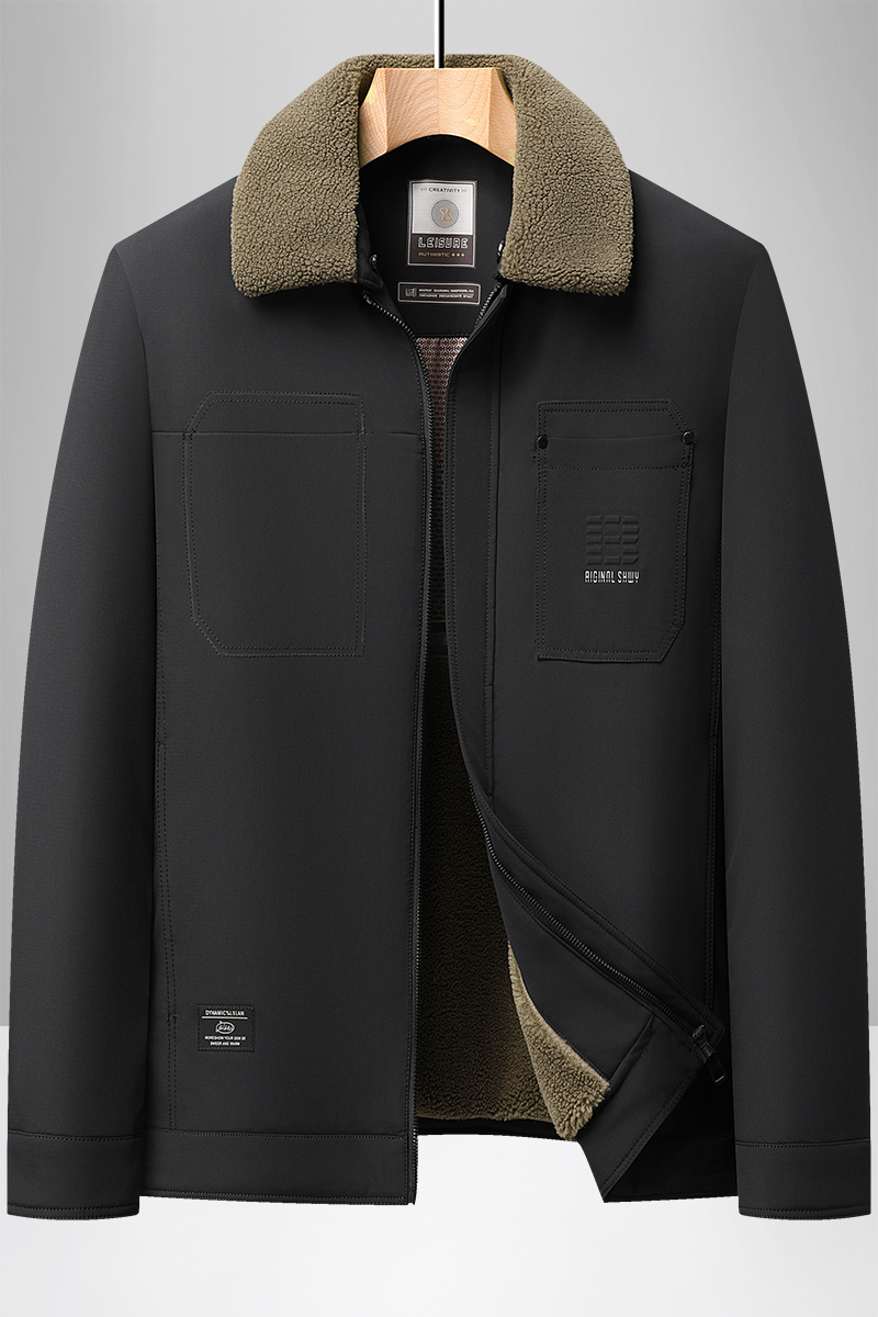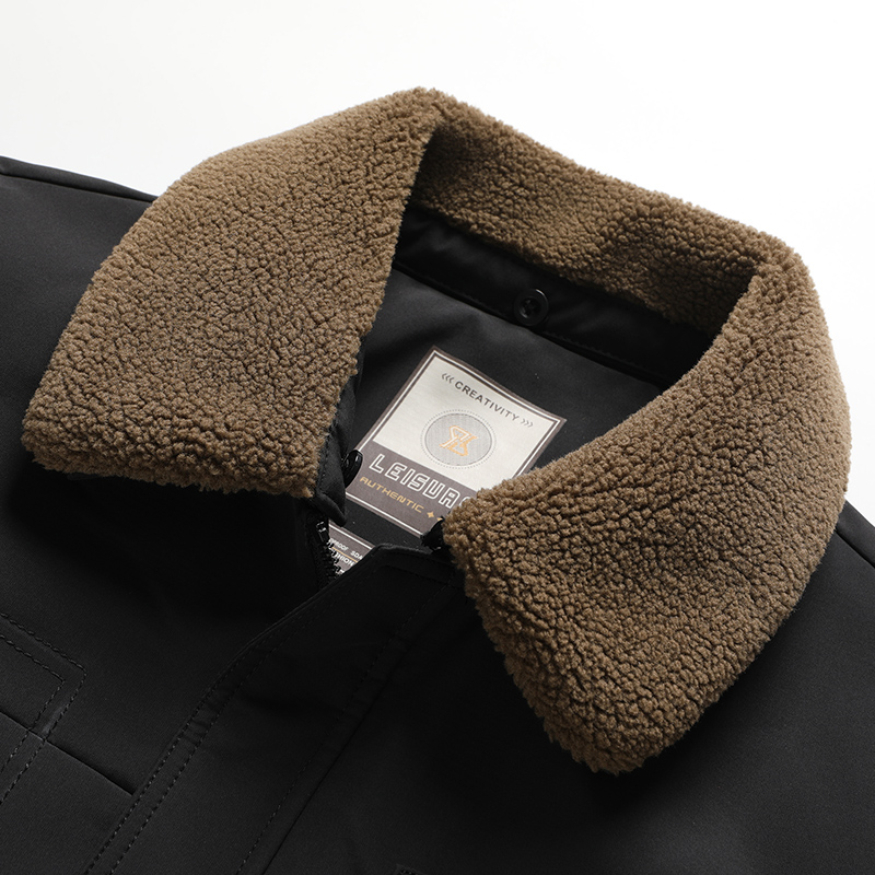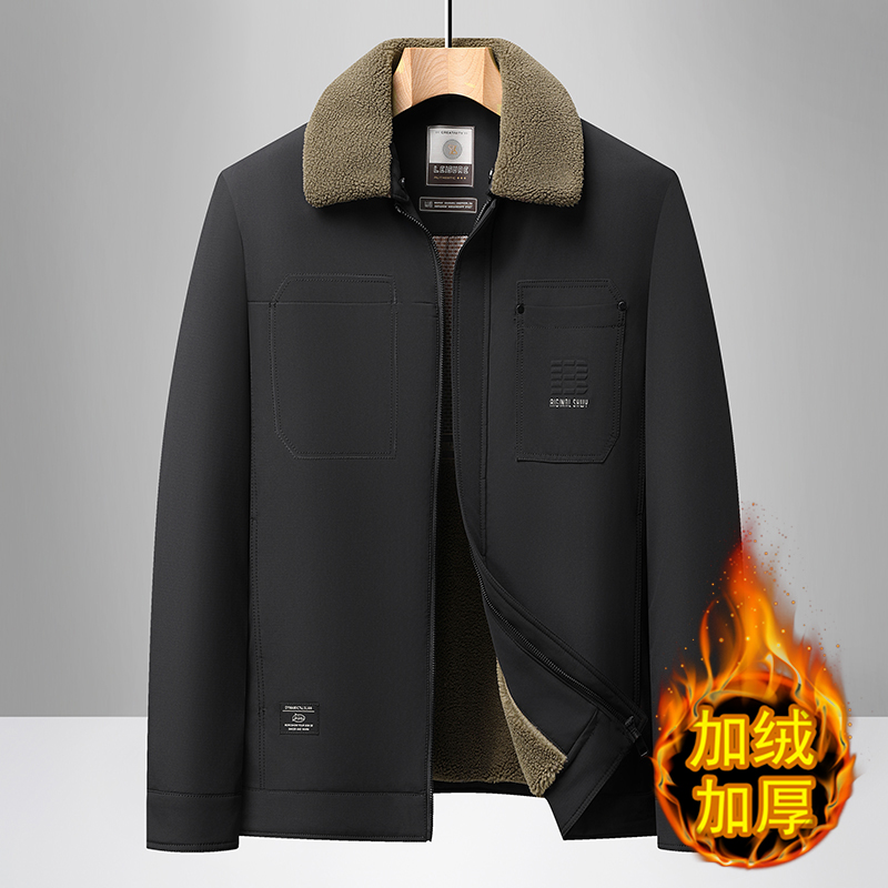 羽绒皮棉袄爸爸冬装外套加绒加厚皮衣服秋冬季中老年男装-2027 175 黑色