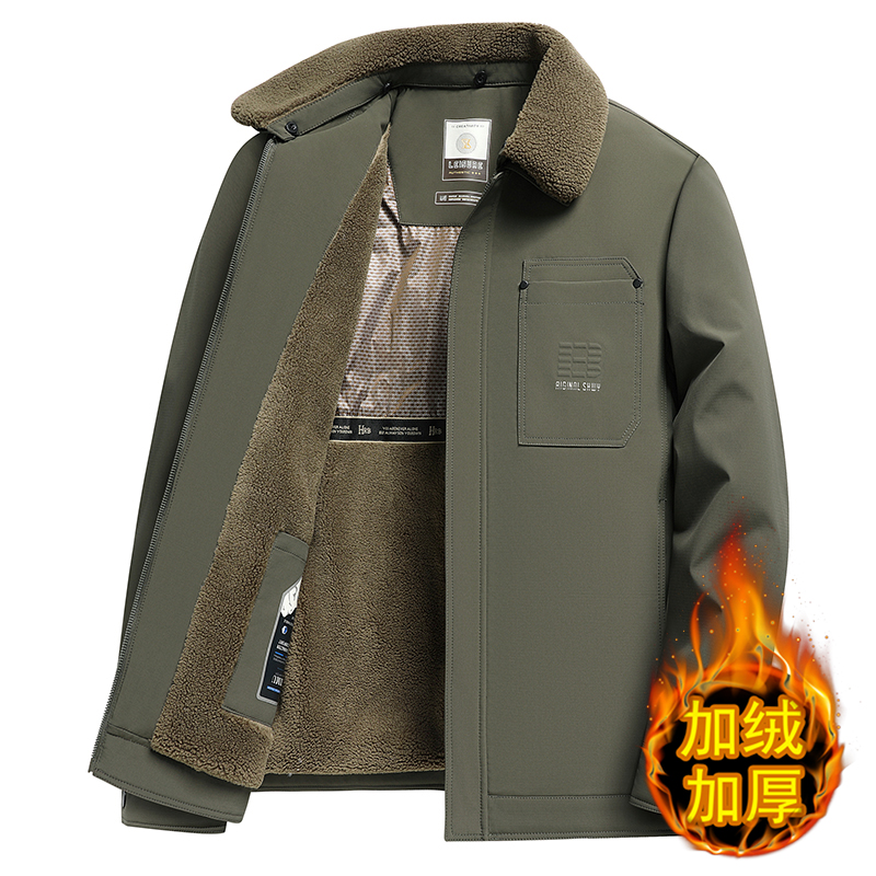 羽绒皮棉袄爸爸冬装外套加绒加厚皮衣服秋冬季中老年男装-2027 175 绿色