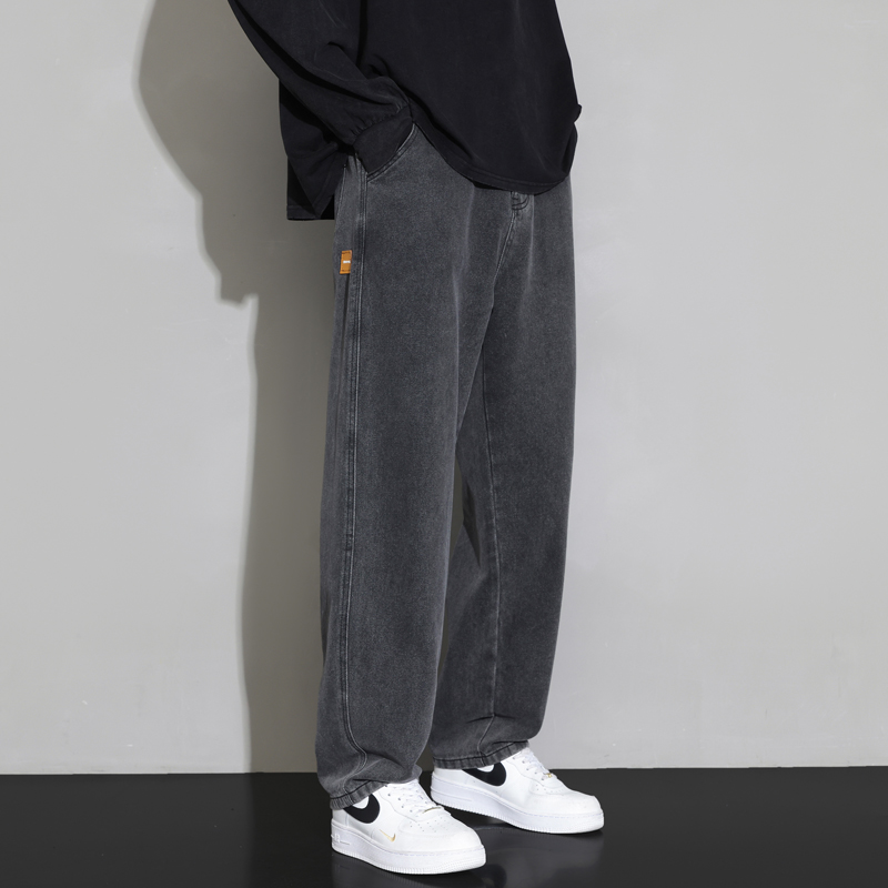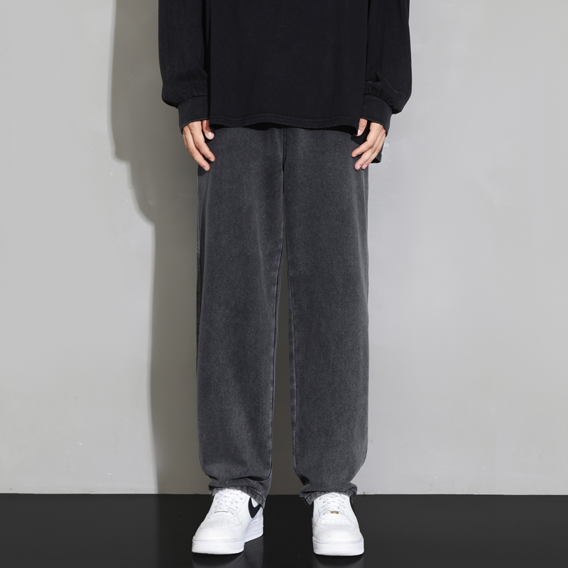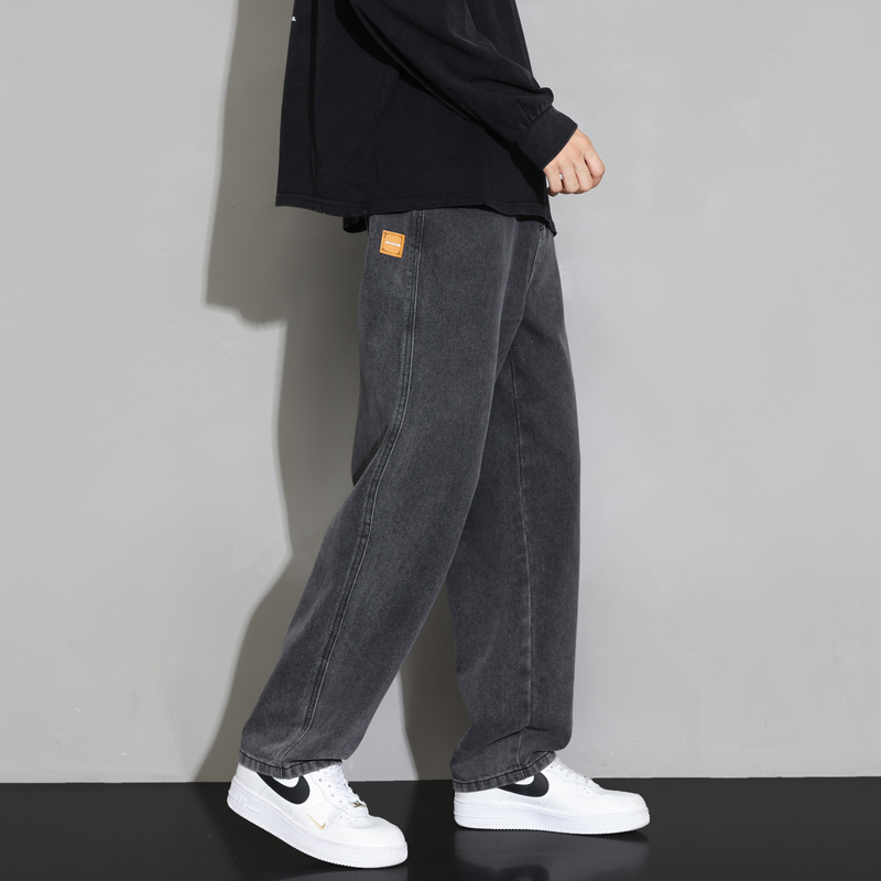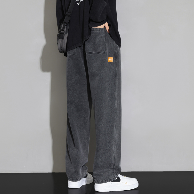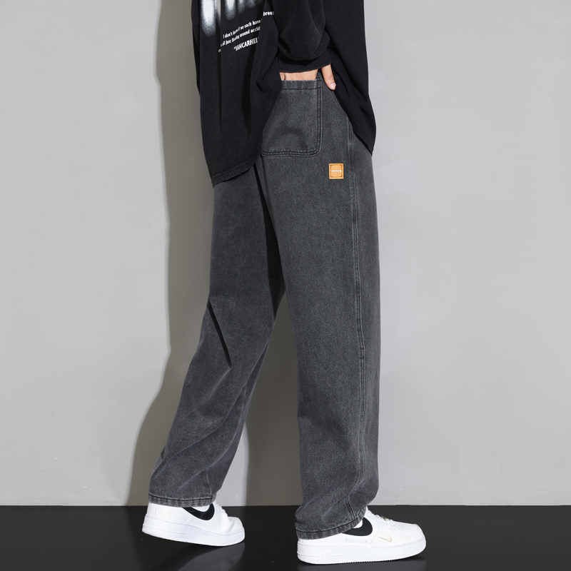 G79 春秋新款牛仔裤男宽松卡其阔腿裤绣标小众日系水洗休闲长裤子男潮 2XL 水泥灰
