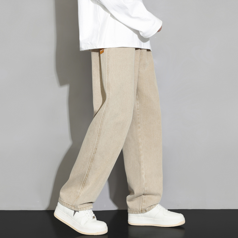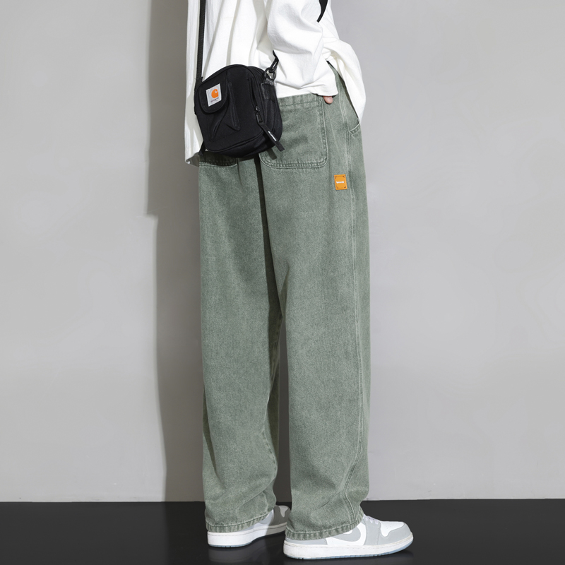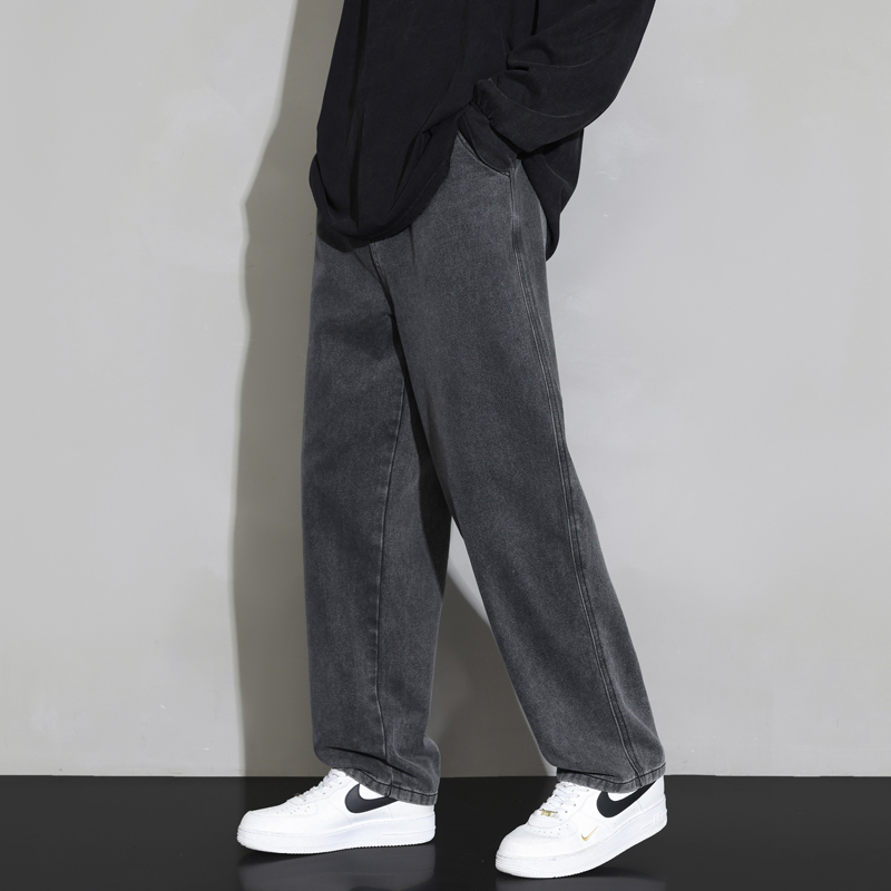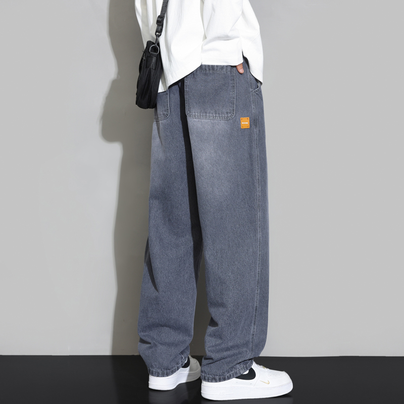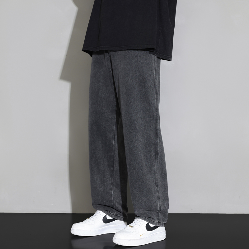 G79 春秋新款牛仔裤男宽松卡其阔腿裤绣标小众日系水洗休闲长裤子男潮 2XL 水泥灰