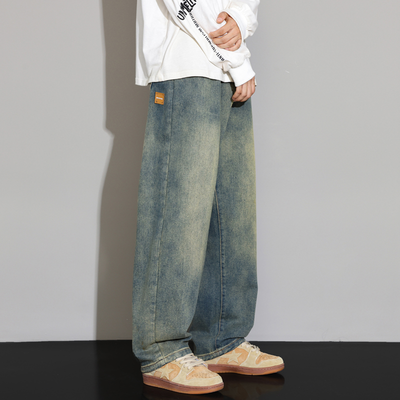 G76 复古蓝牛仔裤男款秋冬季美式宽松直筒水洗潮牌绣标怀旧长裤子男士