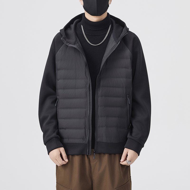 国标羽绒服男款2025年新款中长款加厚2024新款季短款连帽冬装防风 M 黑色
