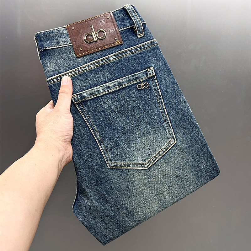 2023秋冬新款现货加绒牛仔裤直筒修身弹力水洗复古高端轻奢男士 28 蓝色