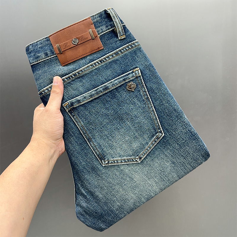 2023秋冬新款现货加绒牛仔裤直筒修身弹力水洗复古高端轻奢男士 28 蓝色