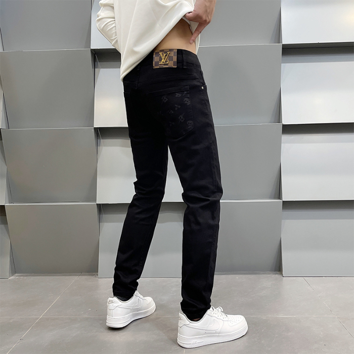 2025年秋冬新款黑色高端印花牛仔裤男士冬季宽松直筒裤休闲长裤 28 黑色